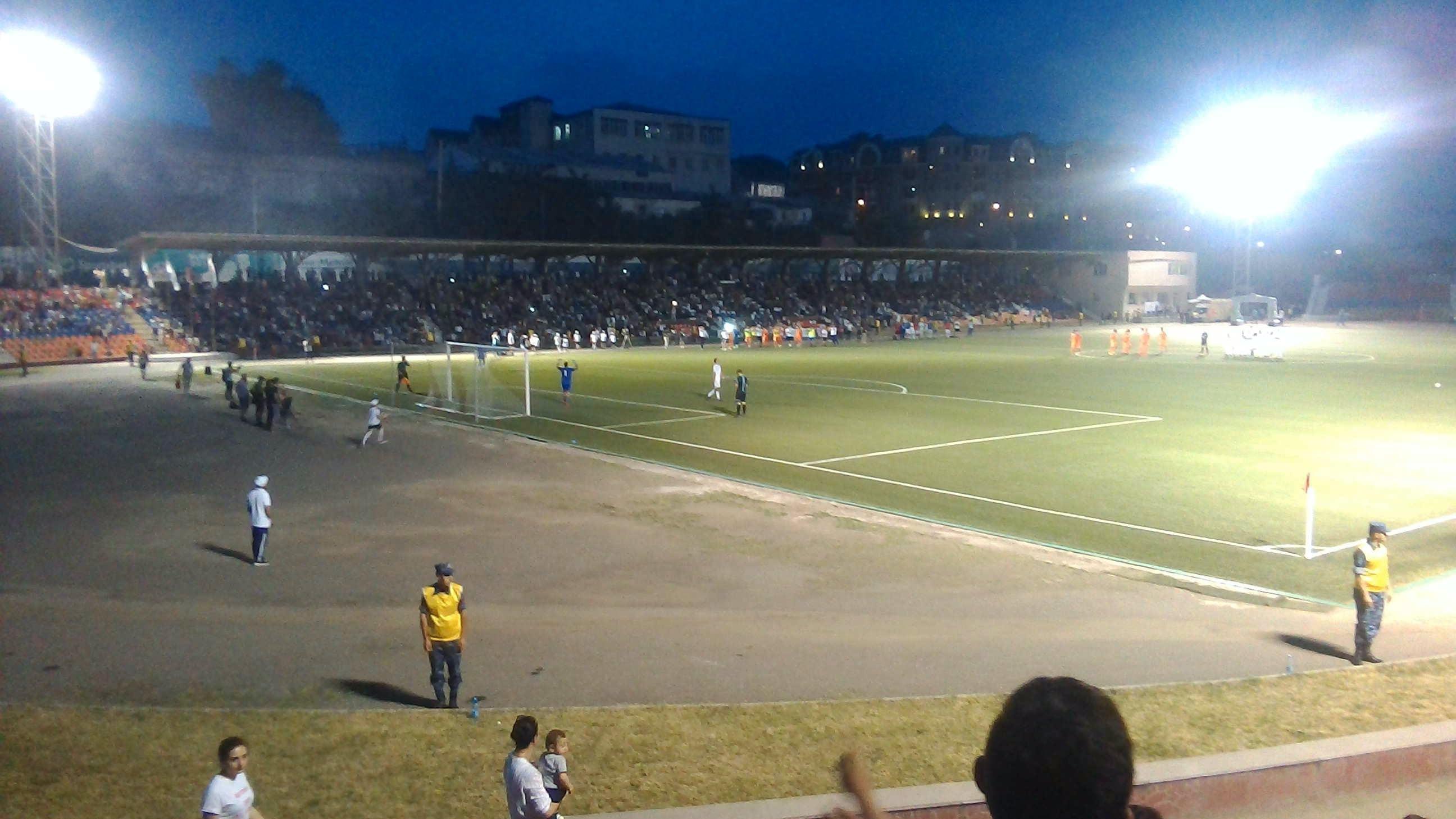 Трибуны были заполнены процентов на 70, дудели, свистели, даже барабан слышен был и пели. Болельщики скандировали "Армения" и гнали команду вперед. Вскоре, команда Западной Армении заработала пенальти и сравняла счет.