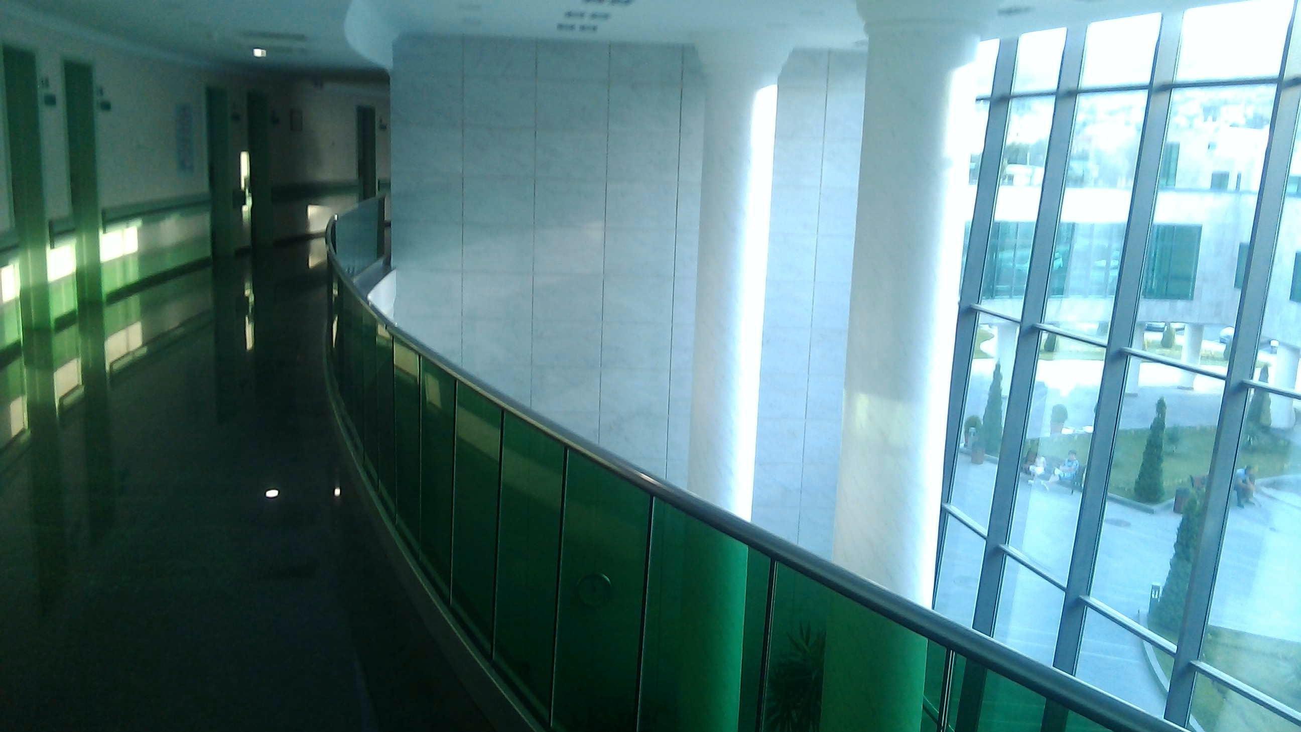 Заехал в нашу больницу, тетя болеет. Большее светлое здание, с парком, фонтанами, скамейками и такой же большой парковкой. Никакой суеты.