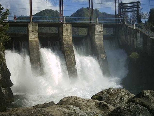 Едешь по дороге, на реке друг за другом построены гидроэлектростанции. Штук десять наверное. Изуродованное русло и река, заключенная в нужные рамки.