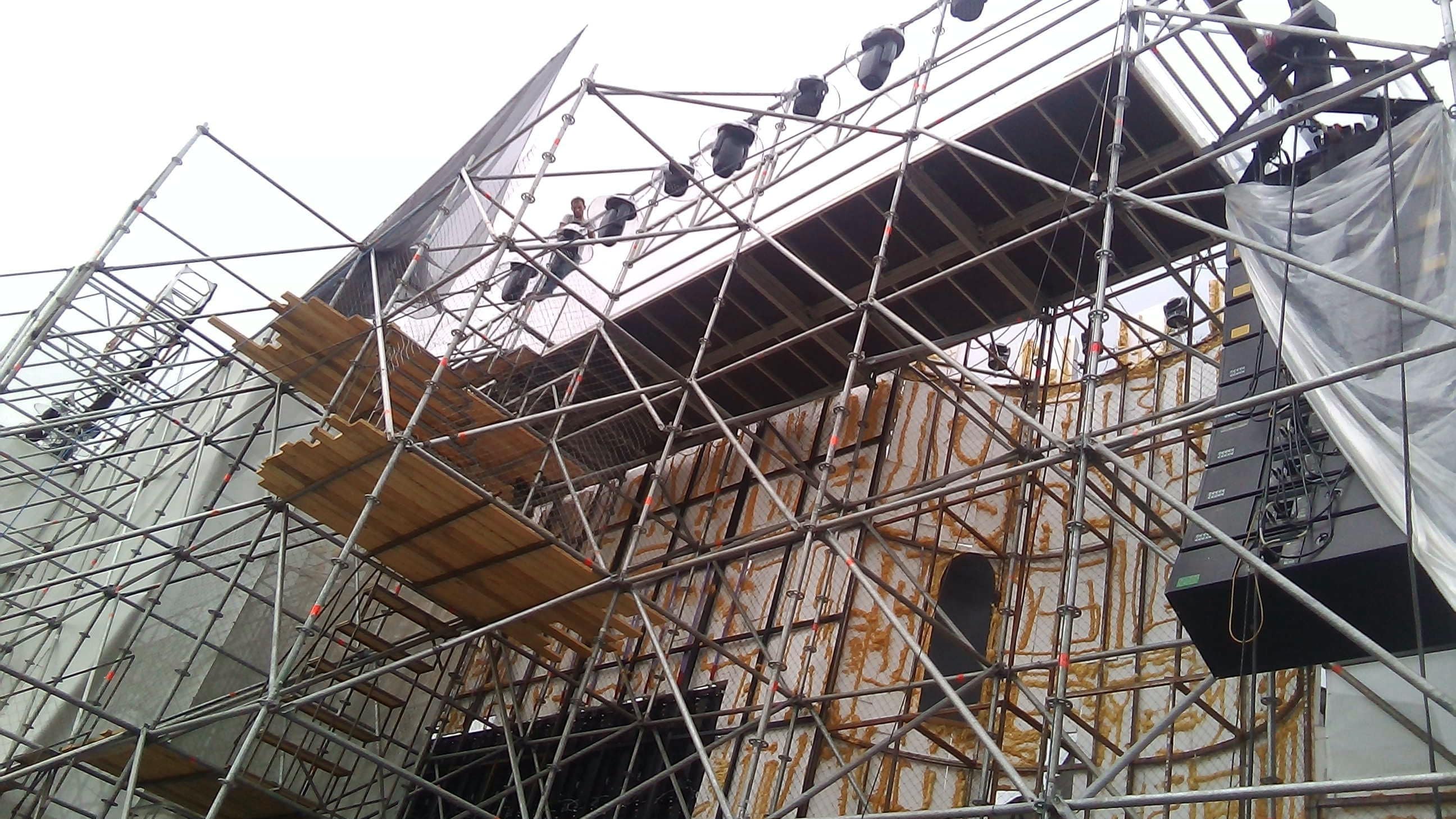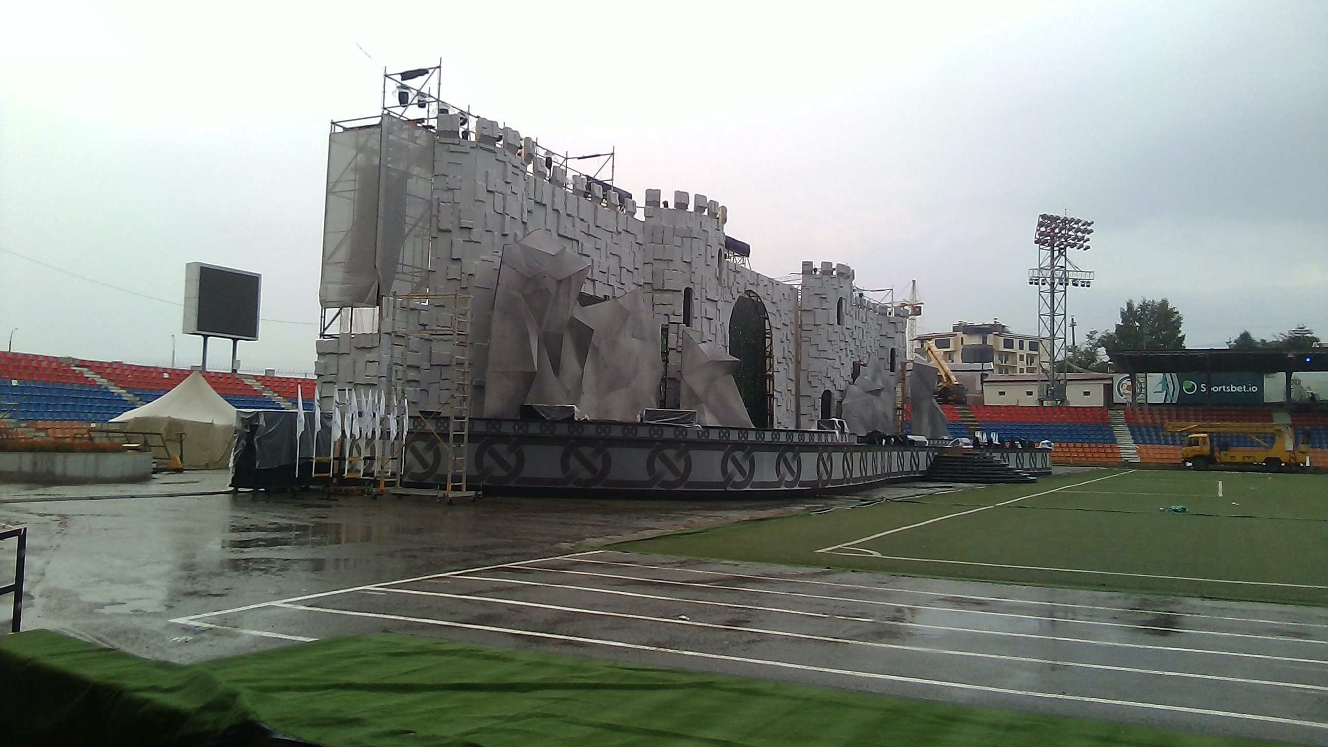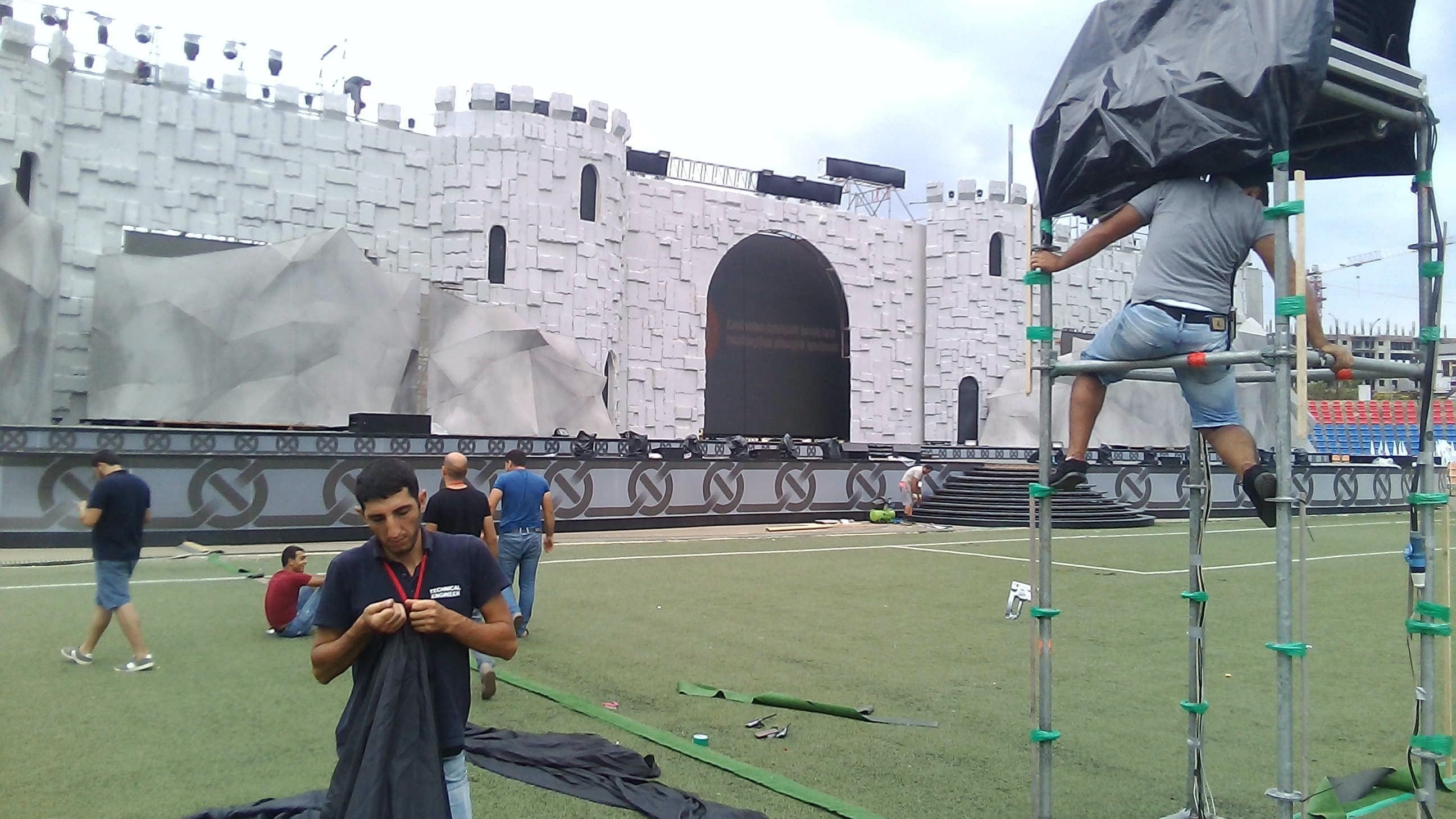 Работы идут полным ходом, сцена в виде замка полностью готова, на ней уже репетируют.