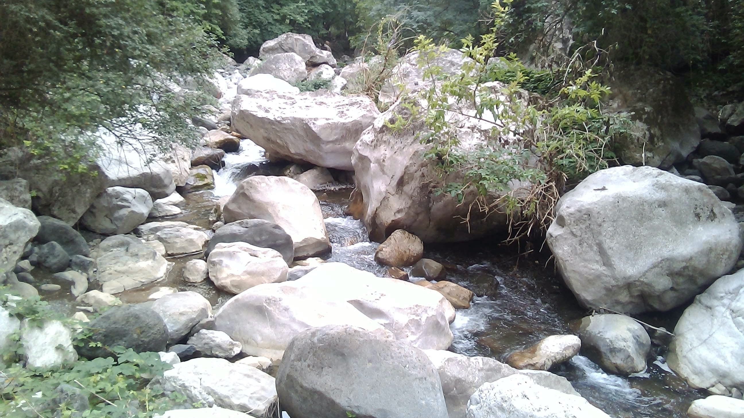 Дошли до реки. "А почему камни белые?",- спрашивают меня. "Река их отбелила, она раньше по ним текла, а теперь воду украли, вот камни и остались гладкими и белыми..."