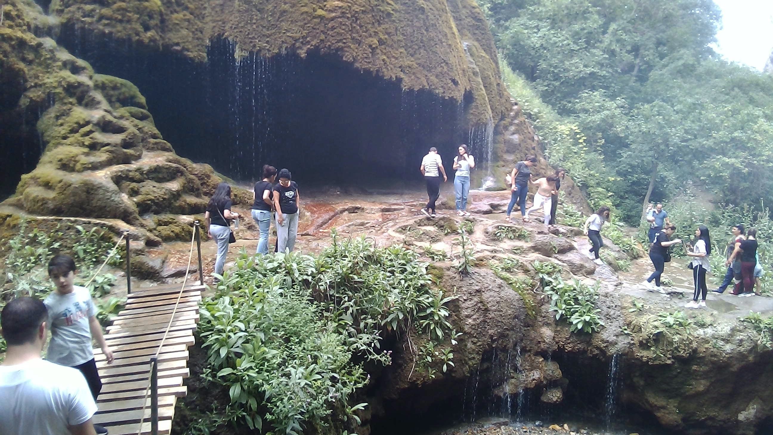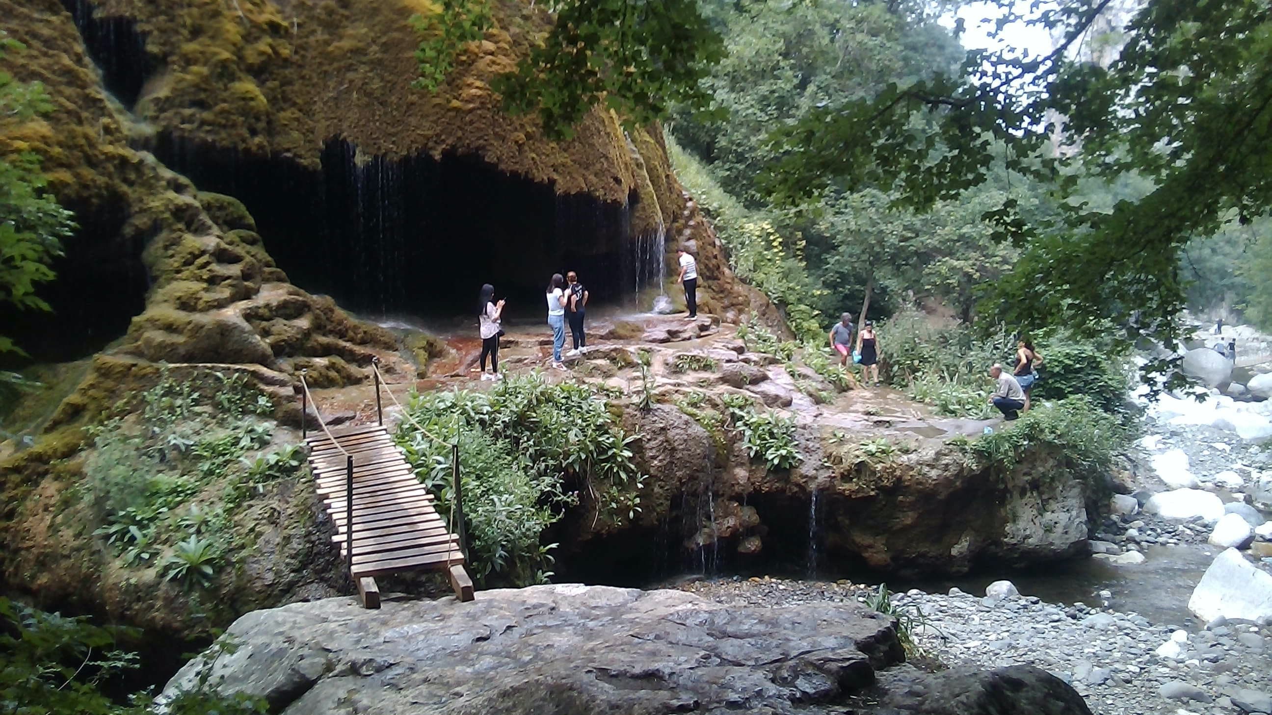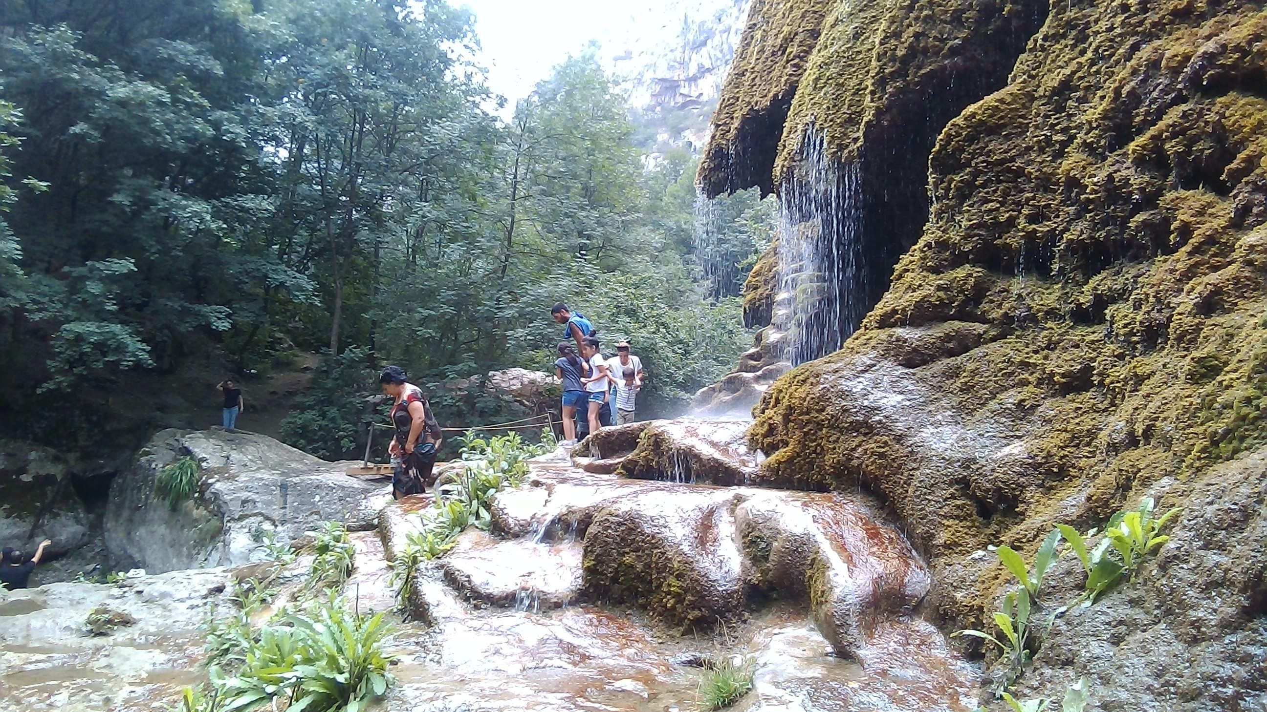 Вот и дошли до пещеры и водопада, тут скользко, осторожней