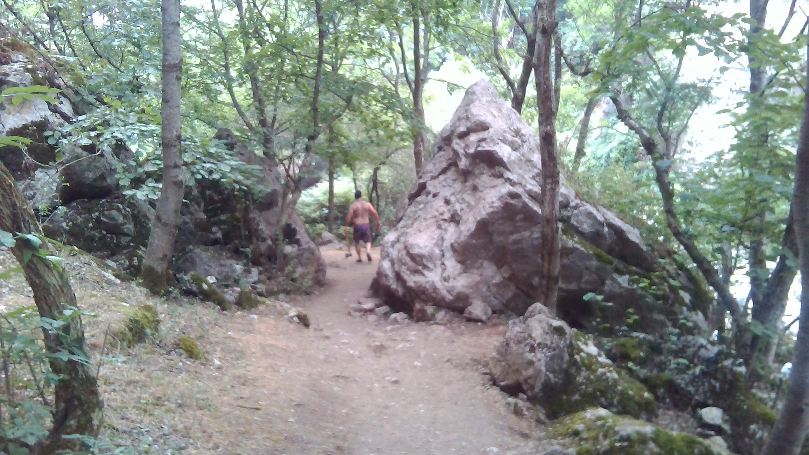 Машину надо оставлять, дальше пешком, км. полтора по тропинке через лес, в ущелье.