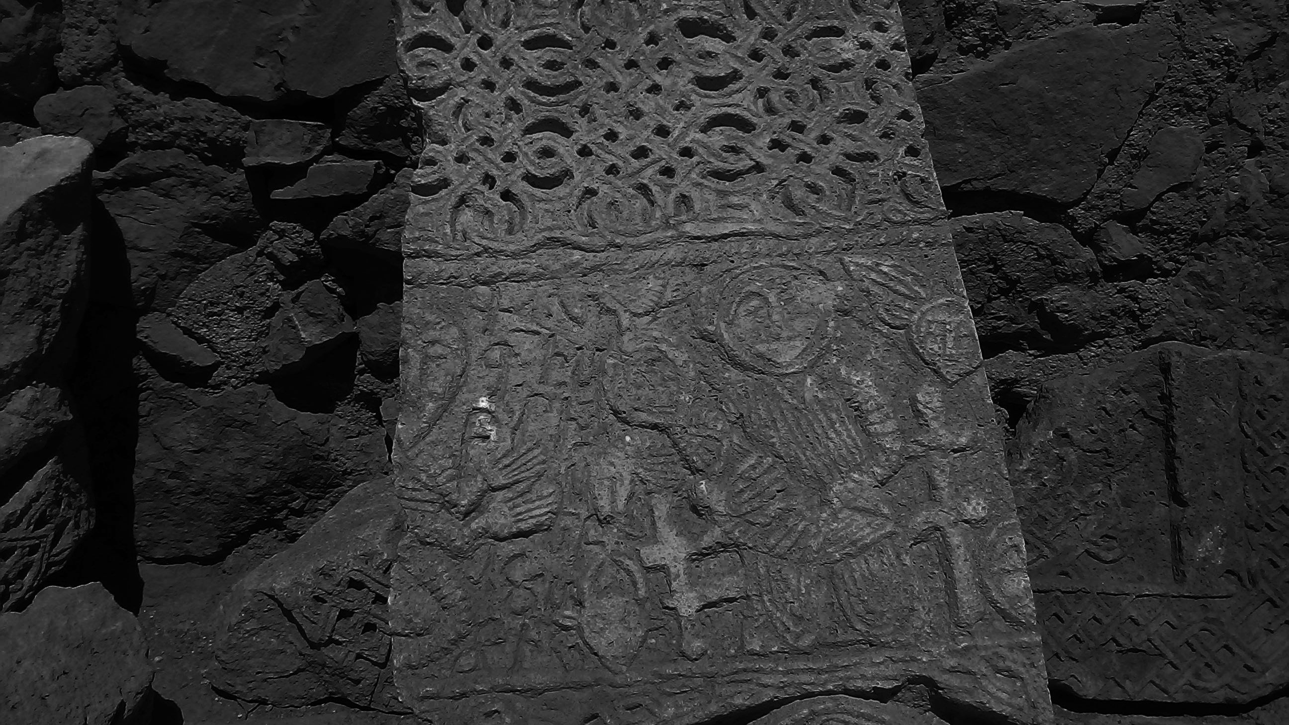 Понятно, что подробности могут и утомить, там десятки Хачкаров и всех их, да еще и с деталями в одном посте не поставить, но вот этот на мой взгляд, очень интересен. Сам Хачкар, к сожалению не сохранился, эта сценка с ребенком - это все, что сохранилось. Сам камень красноватого цвета, я специально сделал фото черно-белым, что бы вы яснее увидели протянутые руки к ребенку и довольные с улыбкой лица.