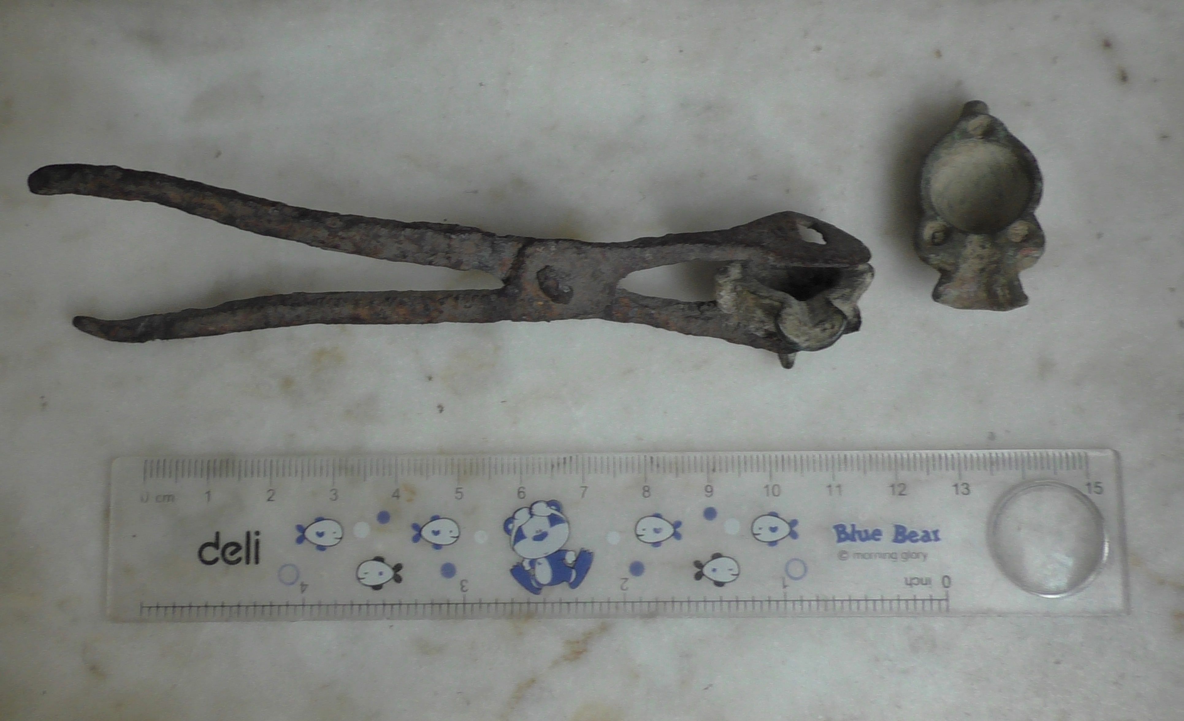 Итак, бронзовый ковшик зажимался в железные щипцы (внизу ковшика есть даже специальная выемка для надежной фиксации) и им что-то отливали. Это что, ювелирный инструмент? Само название деревни "Казанчи", которое идет от слова казан (от татарского "котел"), подразумевает, что в селе жили мастера, которые делали эти котлы. Судя по находке, они не только котлы делали, но и ювелирные изделия.
