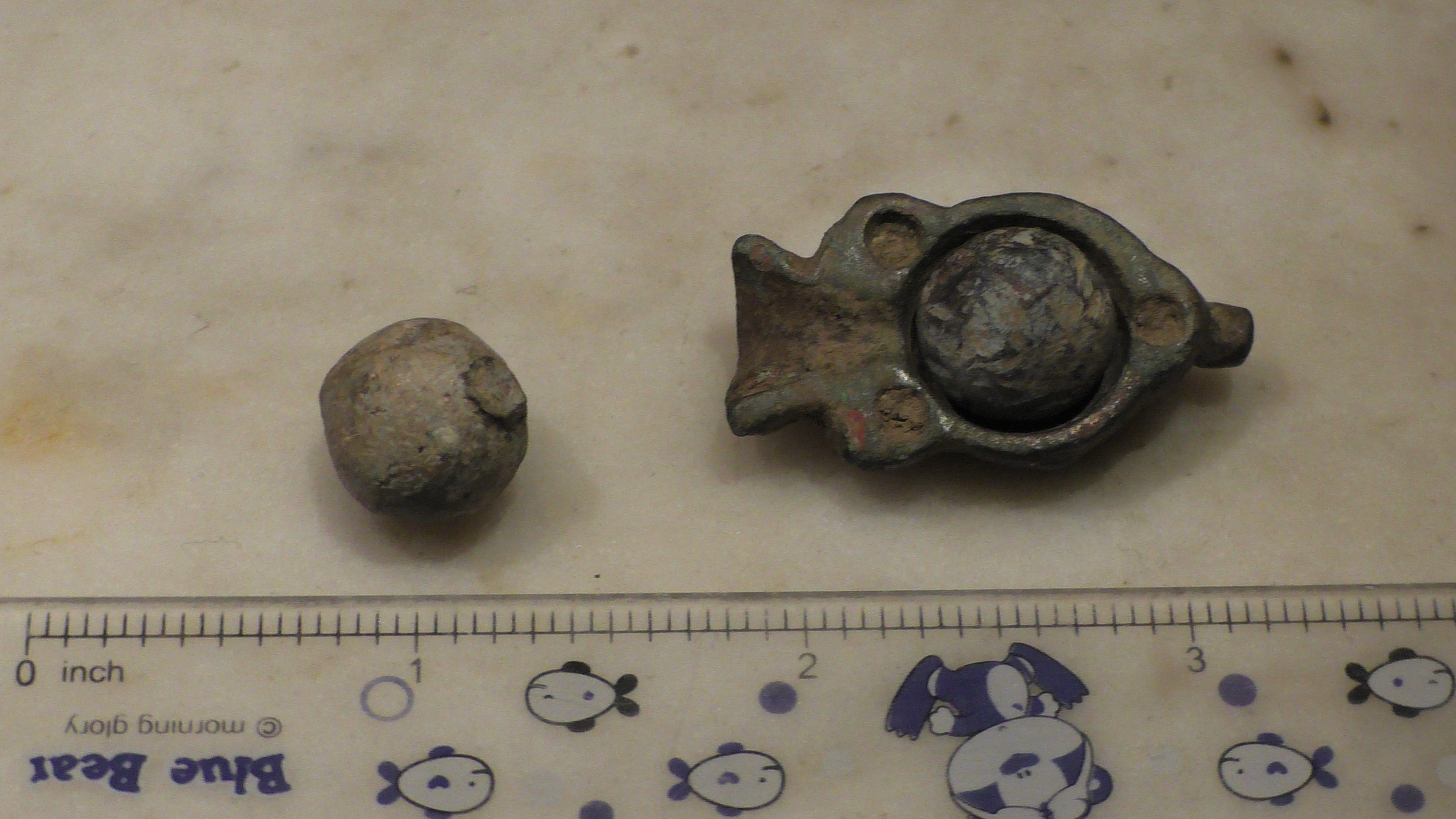У меня есть в коллекции искривленный ствол старинного ружья (у нас такие ружья называли "даян -долдрум", слово видимо, тюркское, переводится, как заряжай и стреляй) и пули свинцовые есть. В ствол ружья сыпался порох, потом вставляли пулю, трамбовали и поджигая фитиль - стреляли. Взял и сравнил.