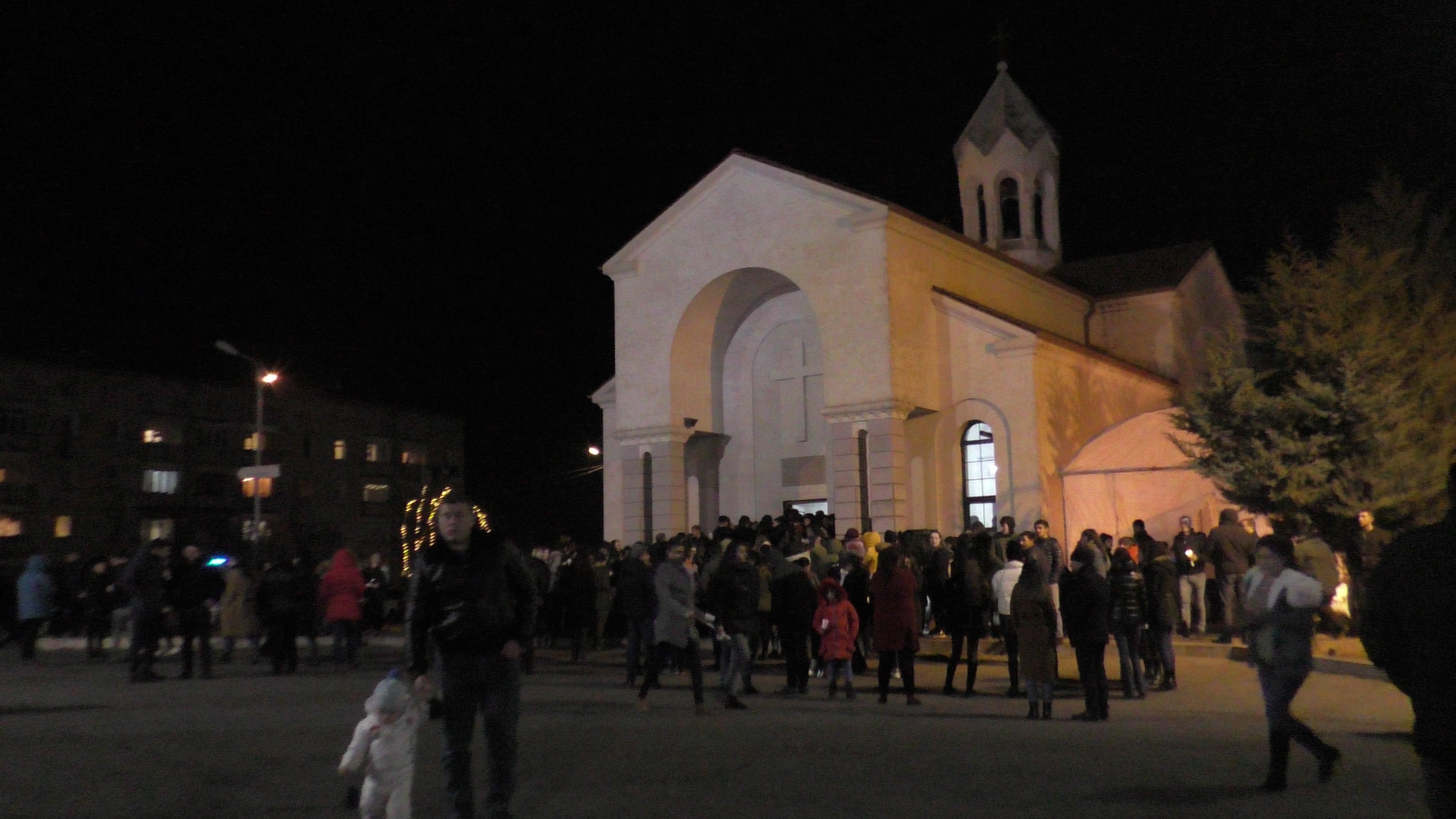 У нас, в Степанакерте, оно уже наступило. Рождество - второй по значимости праздник у христиан. Люди, стояли у церкви со свечками и ждали огня. Обратил внимание, что у церкви собрались в основном люди молодые, многие с детьми пришли.