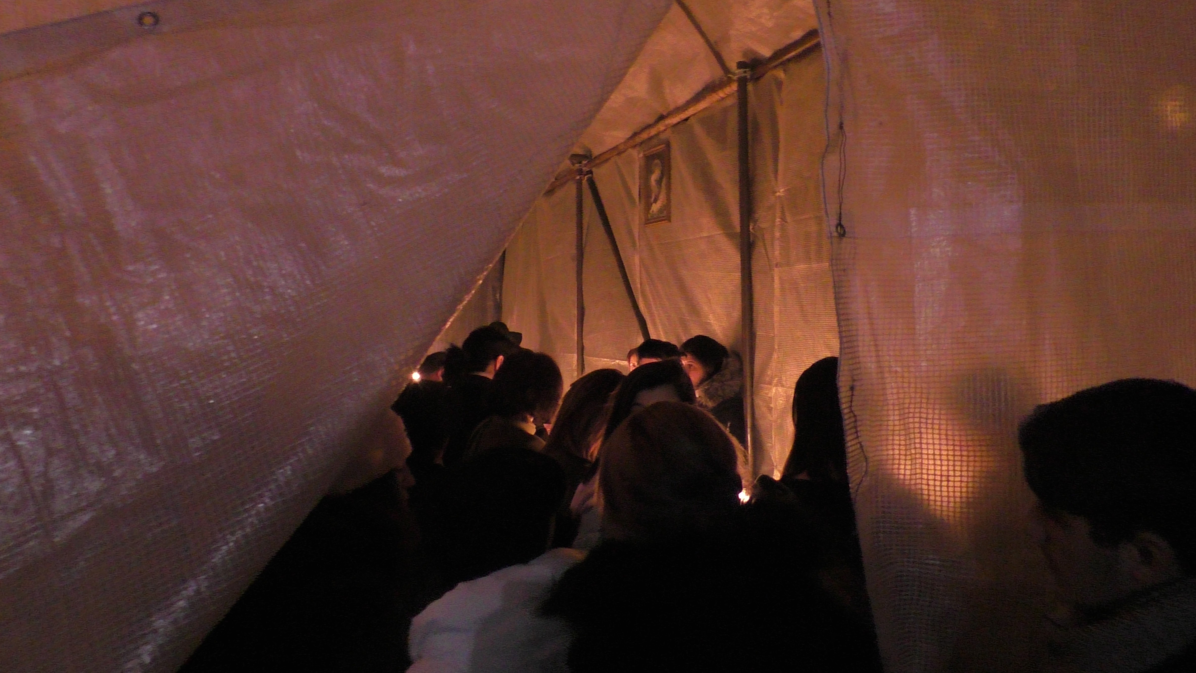 Рядом с церковью установили импровизированную палатку, где зажигали свечи.