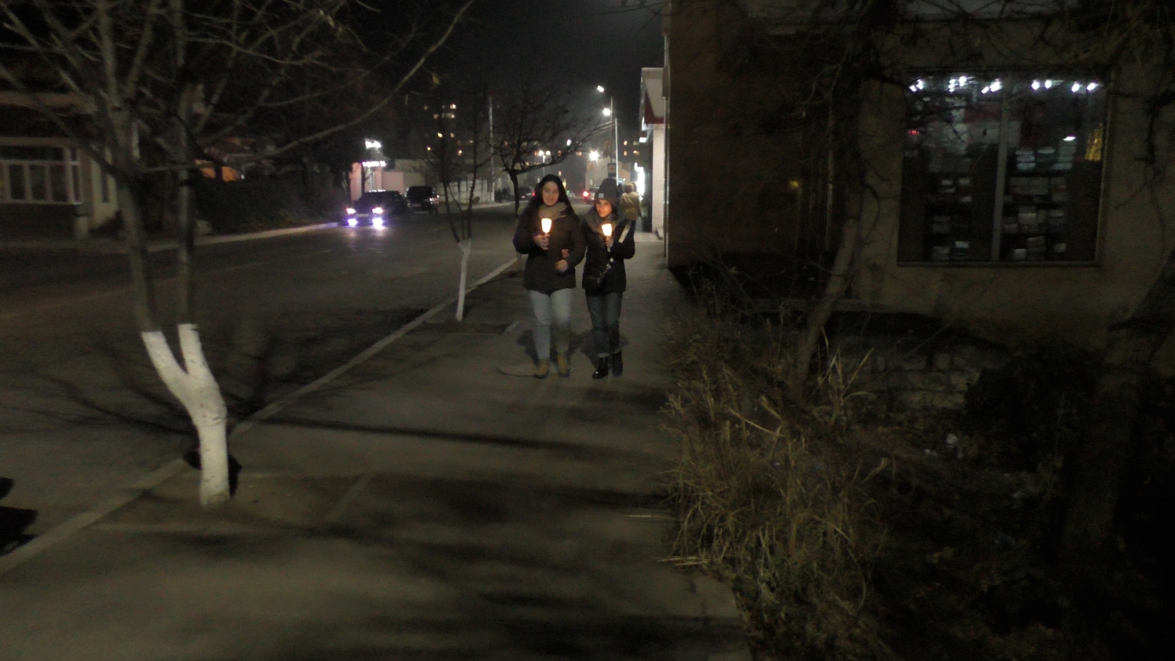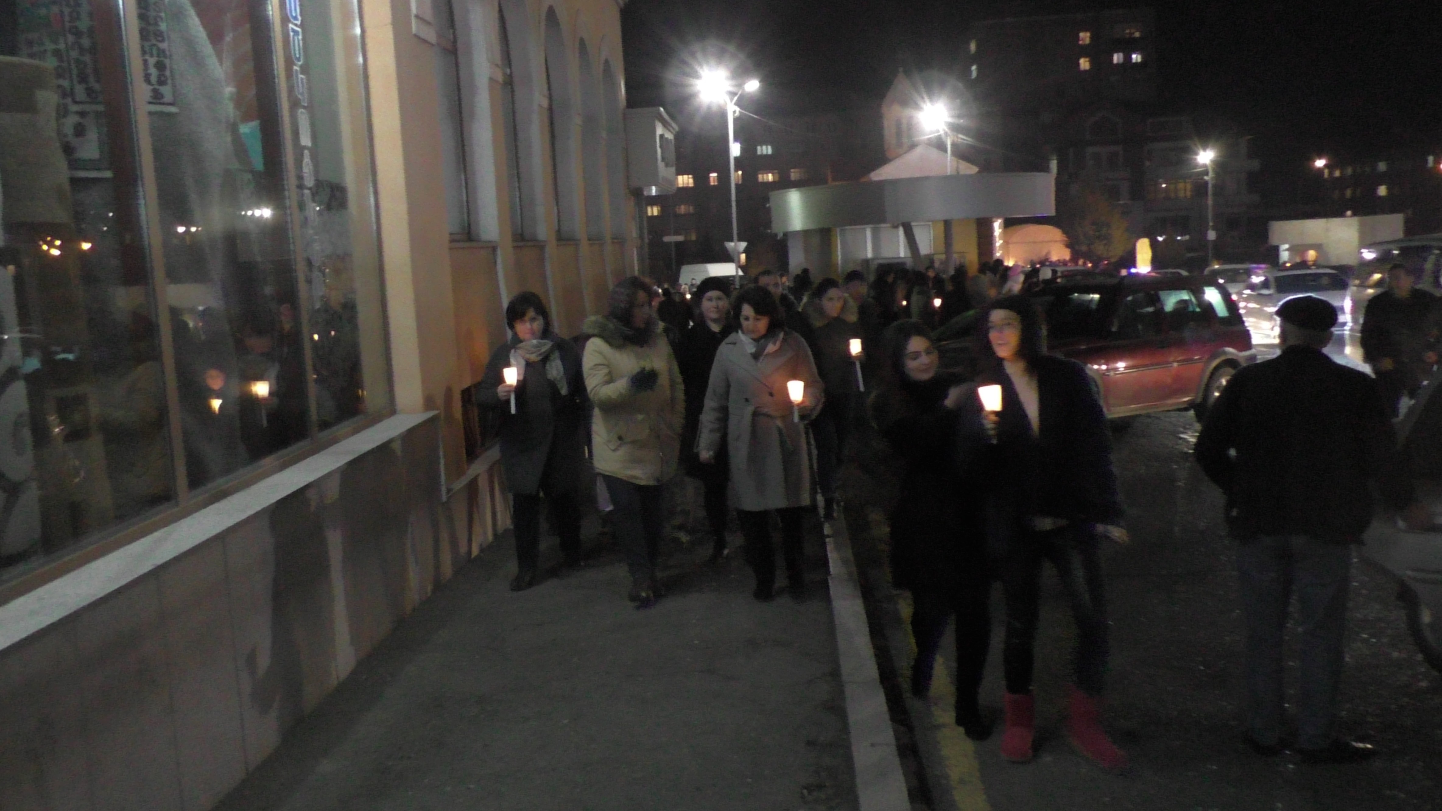Сейчас, по всем улицам города идут люди с горящими свечками. Разносят огонь.