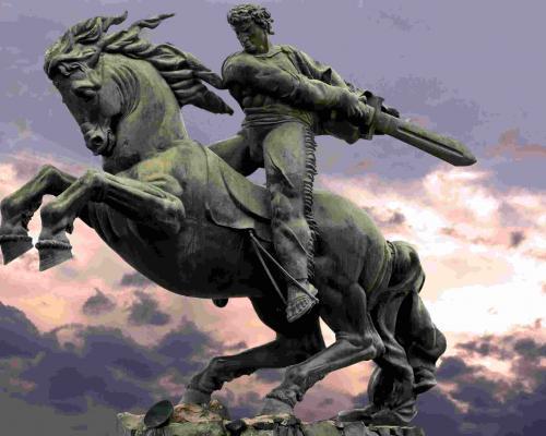 Приезжали в Ереван? Видели памятник Давиду Сасунскому? Вот он, слился с конем размахнувшись мечом - весь в движении. Про Давида Сасунского и про всех сасунских храбрецов можете прочитать в нашем народном эпосе. Есть и в русском переводе. Интересно. Эпос показывает характер народа.