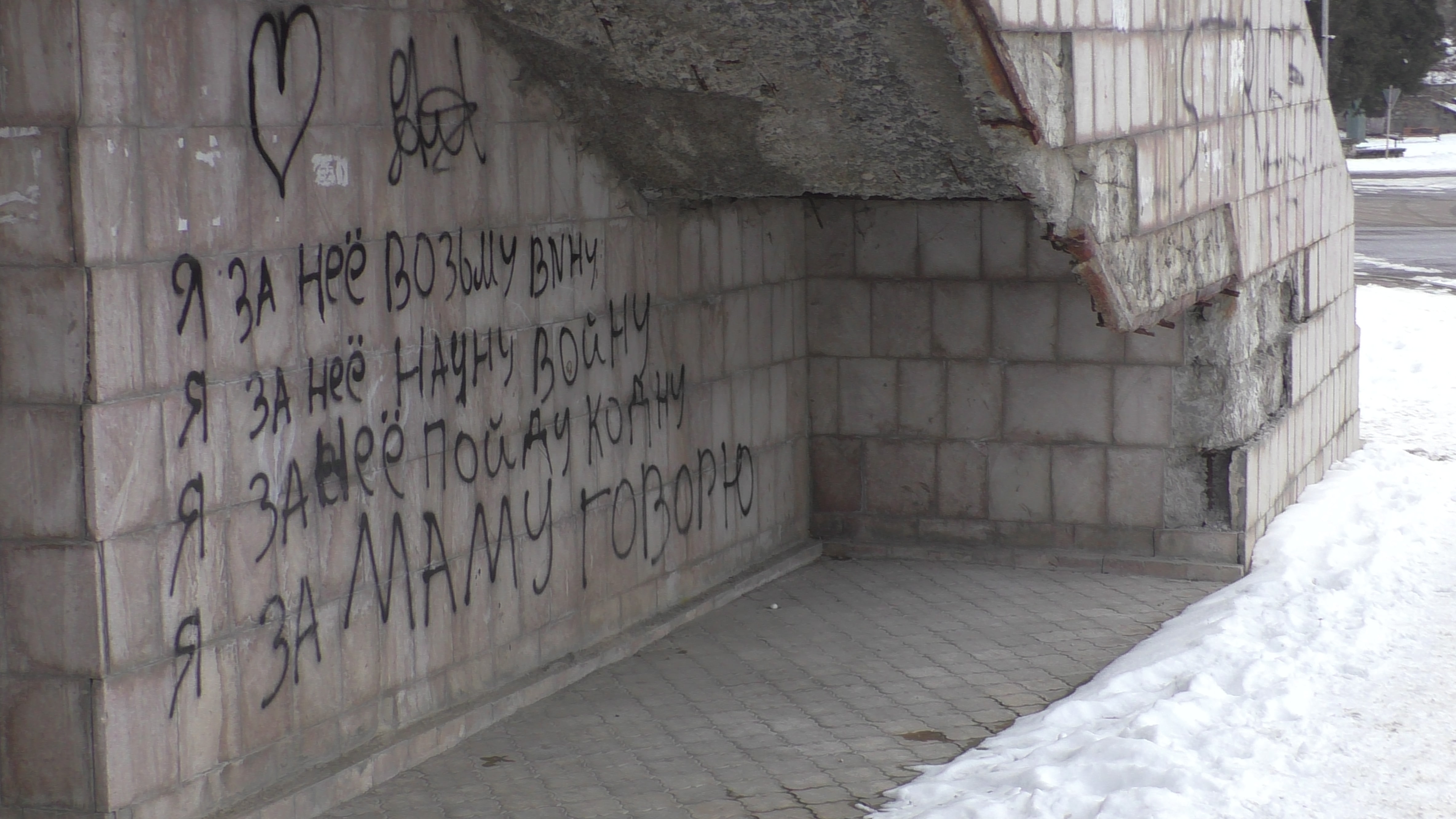 Елка выросла на стене дома Жамгарянов, видимо, не в курсе, что новый год закончился, растет себе дальше