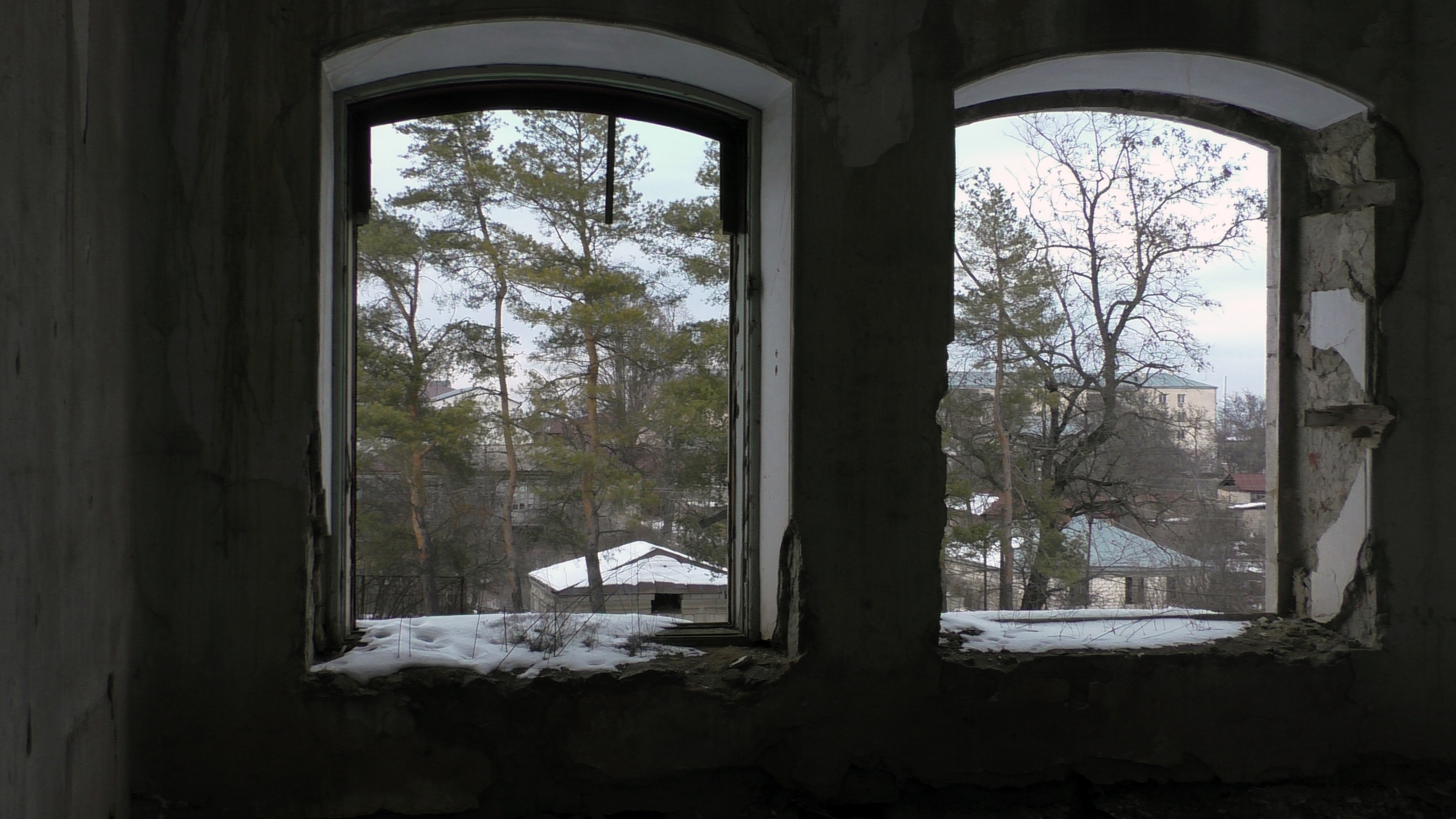 Я прошелся по зданию, хотя оно находится в явно аварийном состоянии и что-то может упасть на голову в любой момент. Само здание крепкое, умели в старину строить, видно даже, что в советское время его укрепили, вот оно и стоит столько лет без крыши.