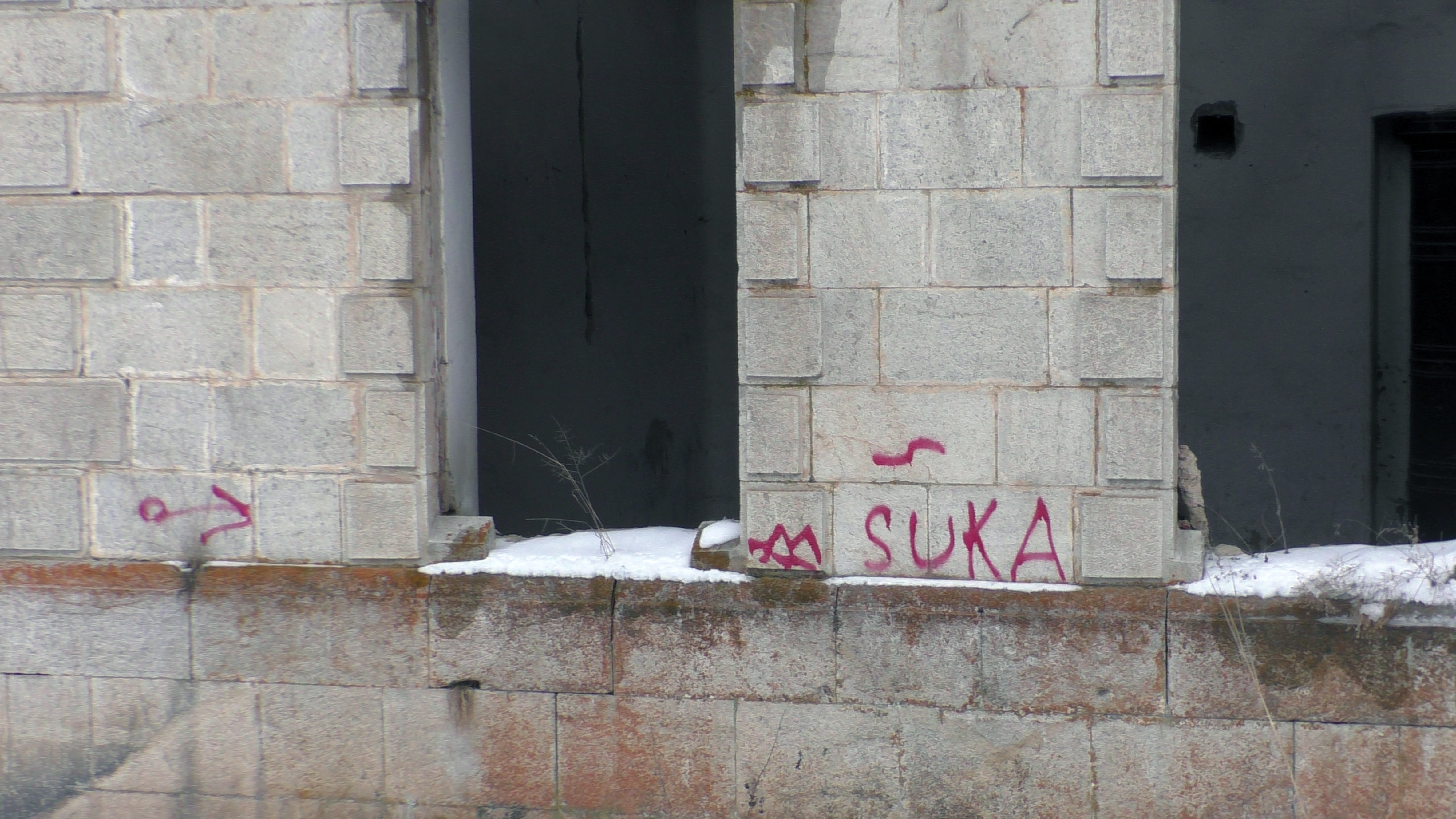 Стены в удручающем состоянии и разрисованы разными надписями