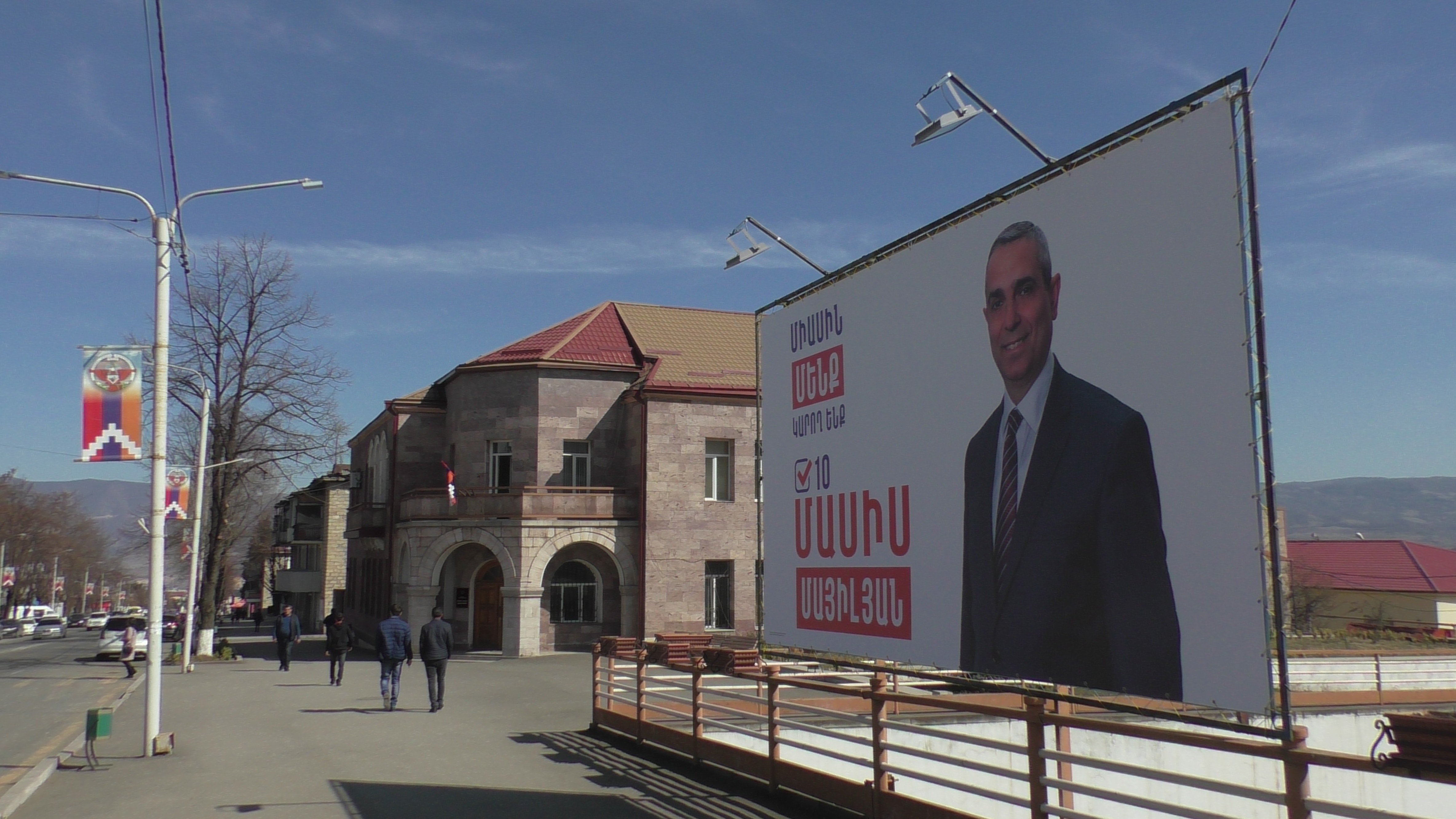 Солнечный день сегодня, покатался по Степанакерту, сфоткал плакаты кандидатов в президенты Арцаха. Нашел не всех кандидатов, то ли денег не хватило на такие большие портреты, то ли из скромности, хотя в скромность я не очень-то верю.
