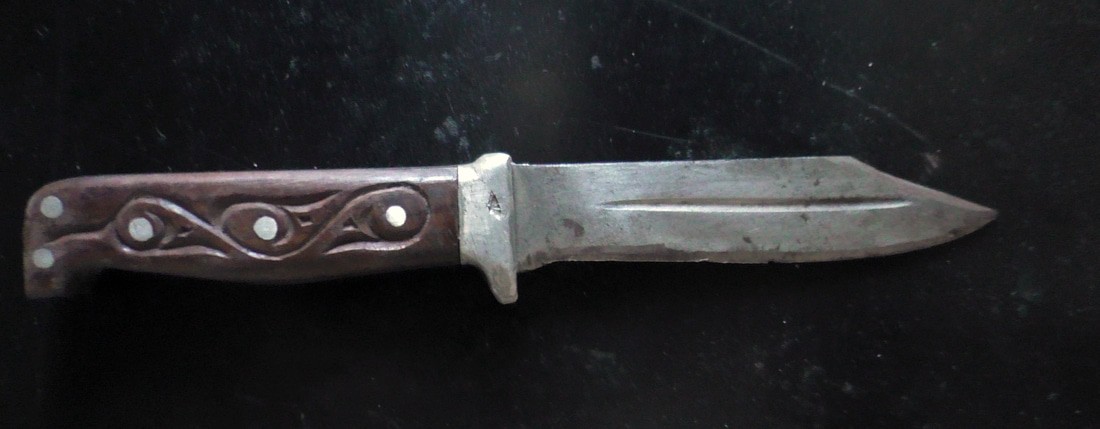 Даже огнестрельное оружие не вытеснило холодное оружие. Нож все также необходим в экипировке. У меня много разных ножей, но мой среди них один, который для меня и сделали. Хорошее лезвие - не сломалось, а рукоятку пришлось заменить. Мастер сделал его из корней орехового дерева, Мхитар вырезал на рукоятке узор.