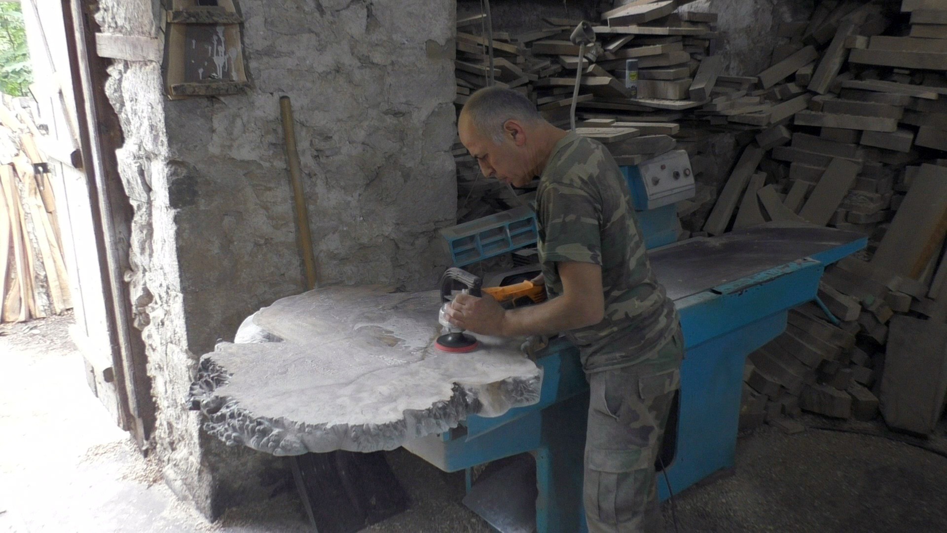 Перед тем, как вытащить ореховое дерево из земли, (корни очень ценные), нужно, чтобы специальный инспектор из Охраны Природы подтвердил, что дерево больное или полностью засохшее. Трудная работа, дерево растет не на асфальте, а в горных расщелинах, где и дорог то нет, но результат все окупает...