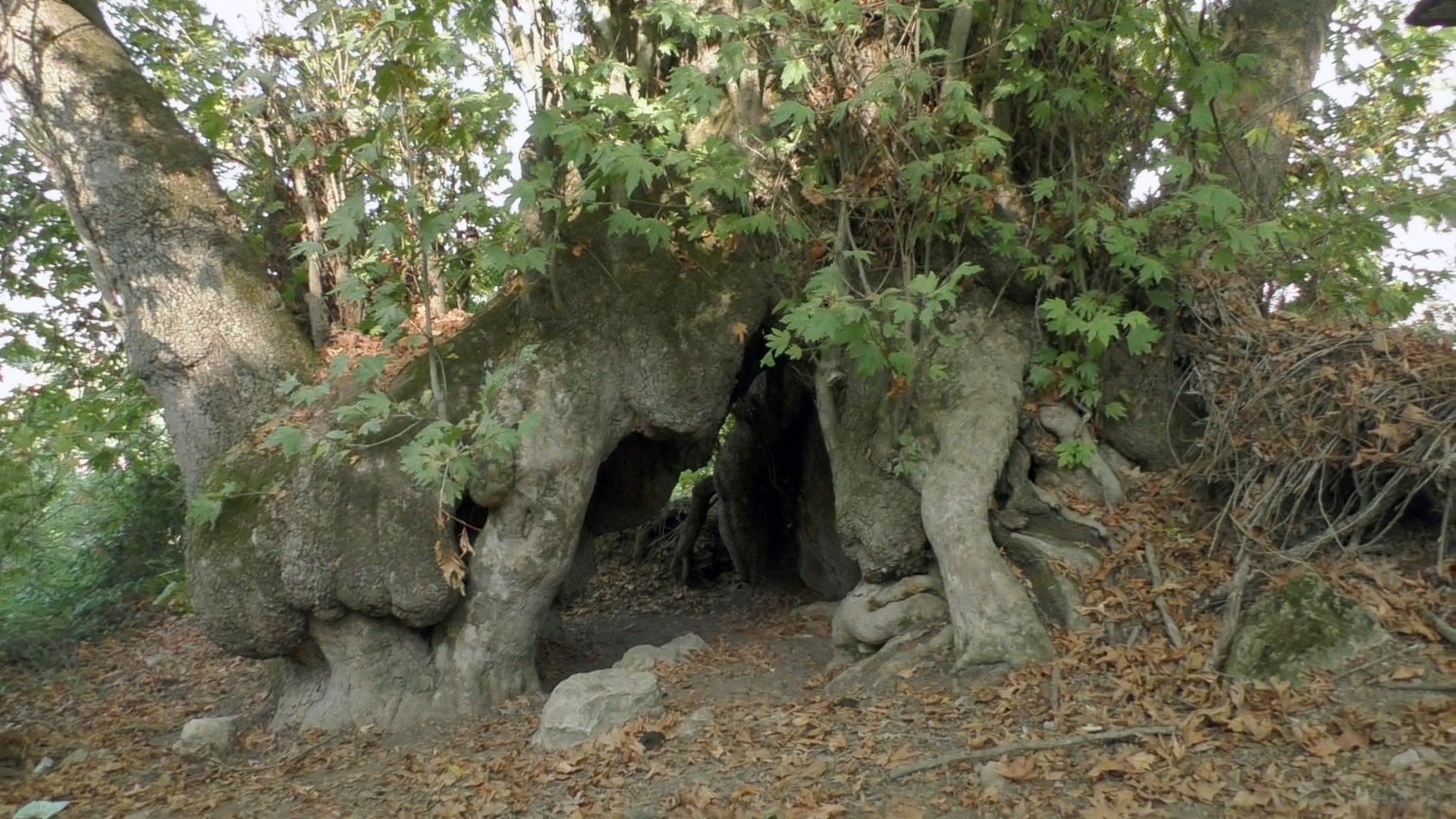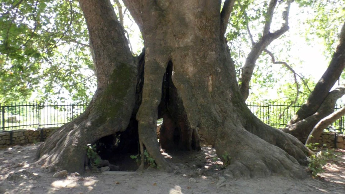 Здесь, растет священный платан, большой, как дом-дупло.