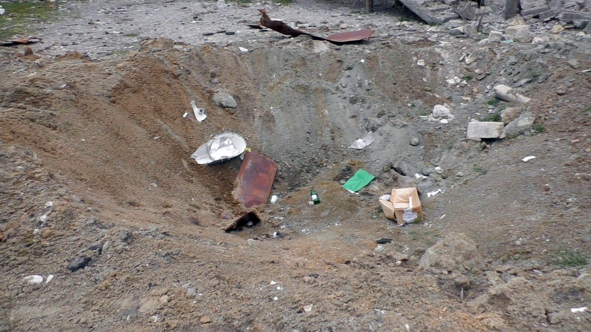 Не знаю, что за ракета там упала, но соседи говорят, что взрывной волной засыпало весь двор землей, добавив к этому разбитые окна и шифер с крыши.