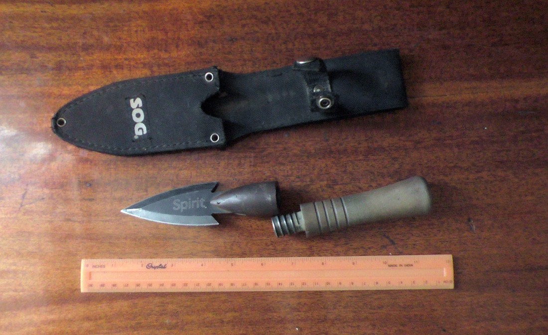 А вот этот нож хоть и не военный, но интересный, это нож-копье "Спирит".