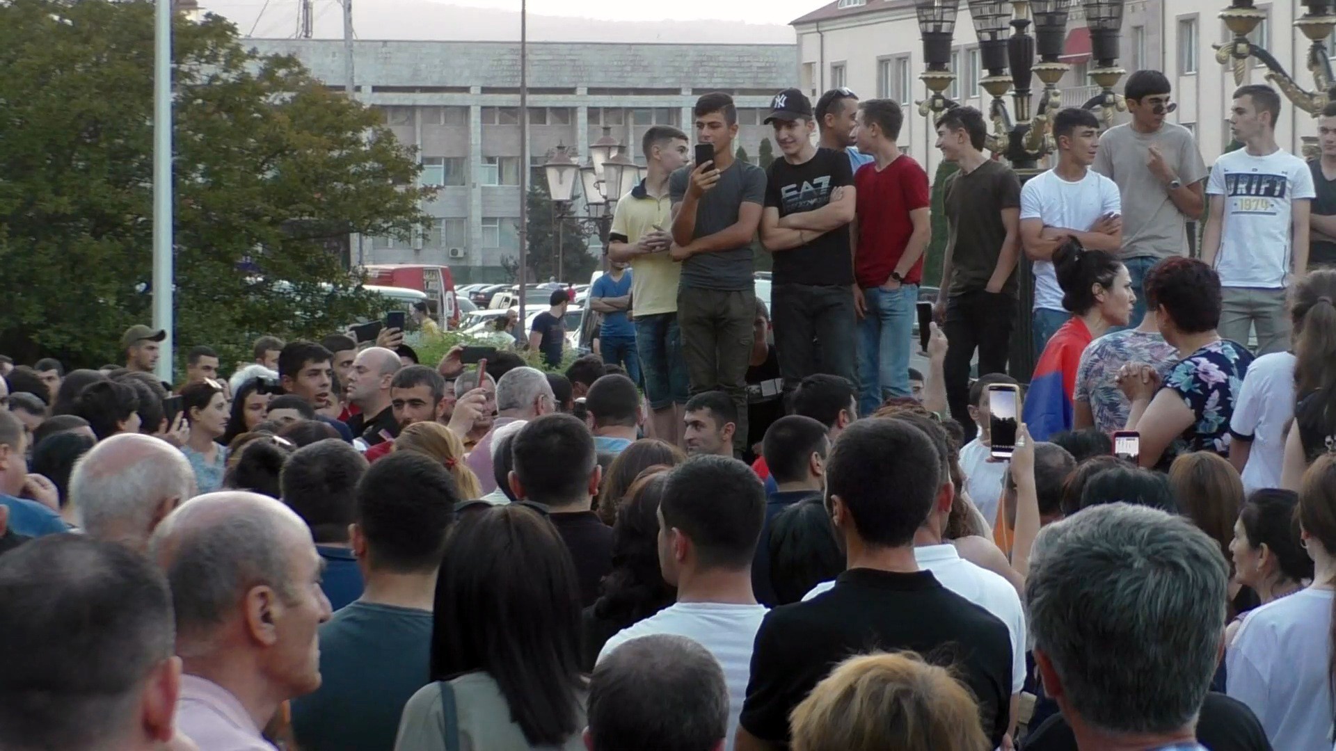 Акцию против президента, судя по их словам, организовали журналисты нашего тв. Что интересно, многие вышли на митинг с детьми. Было много беженцев из Гадрута, хотя видел и знакомые лица степанакертцев. Собралось около тысячи людей, может и больше. Скандировали: "предатель, уходи".