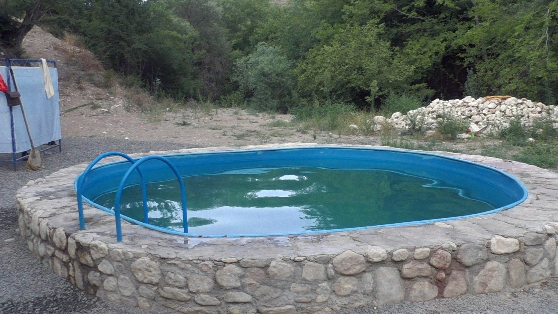 Большой круглый бассейн достаточной глубины, да и вода теплая, прозрачная, голубое небо в ней отражается