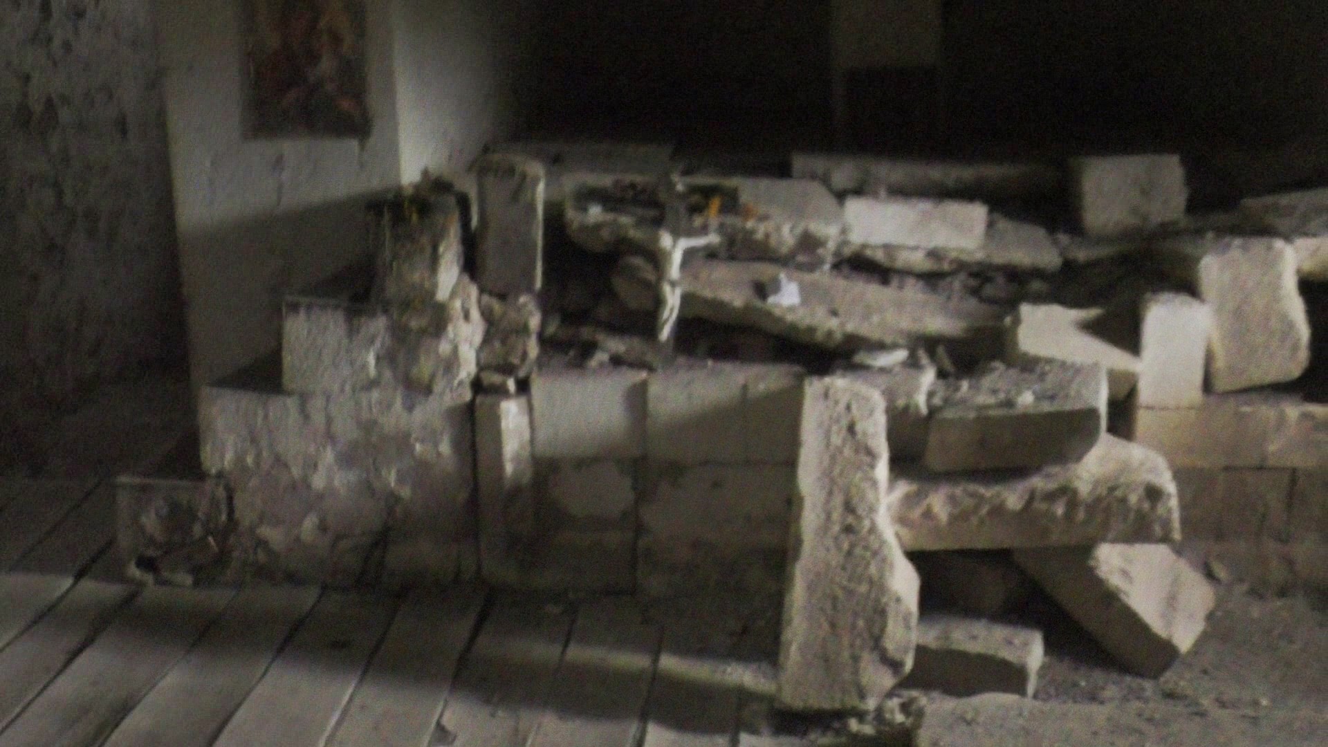 Тесанные плиты алтаря разворочены, видимо, варвары, оккупировавшие ненадолго село, надеялись найти под ними спрятанные сокровища. Большие трещины в стене кричат о том, что церковь нуждается в срочной реставрации. Но кто ее делать будет.