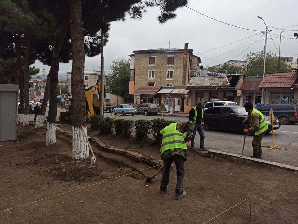 Центральную дорогу на нашей улице расширяют, бордюры отодвигают метра на два. Машин много, каждый день пробки, вот и расширяются за счет зеленых зон.