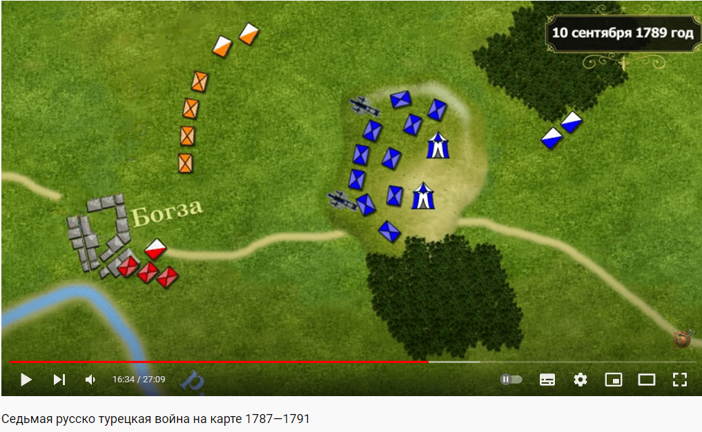 скриншот Рымникского сражения, в котором Суворов разбил стотысячную армию турков и закрепил Крым за Россией. Удивило название местечка - Бог за...