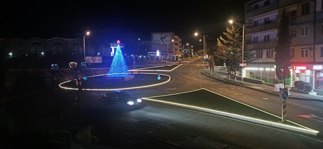 Война унесла тысячи жизней, поэтому на центральной площади нет большой елки, но в остальных частях города есть немало нарядных и светящихся разноцветными огоньками елок.