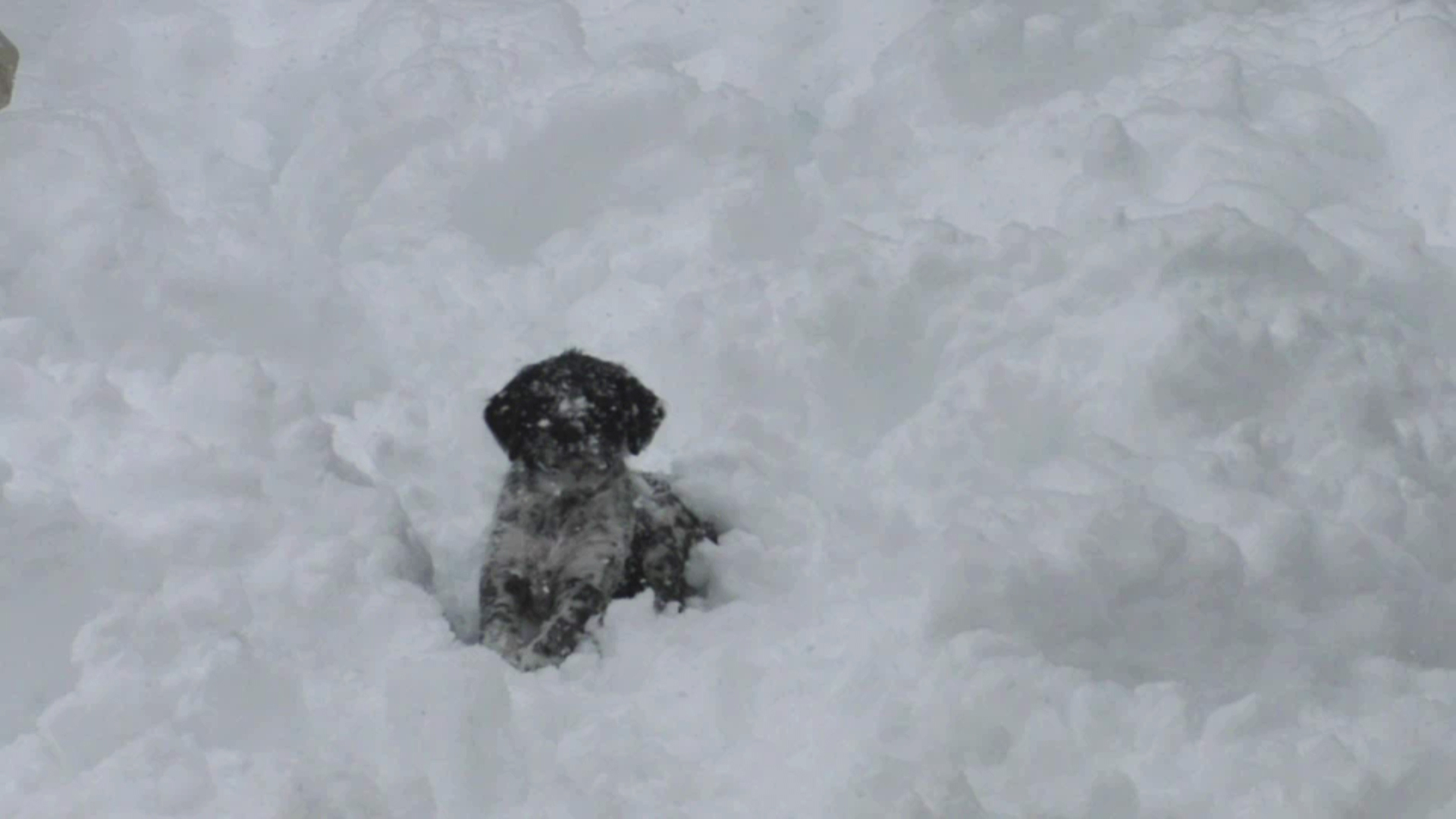 Посмотрел в окно: дети в снежки играют и снеговиков лепят, снега много, под 40 см. потому и снеговики гигантские. Щенят вытащил в сад, они впервые снег увидели, скулят и дрожат, а Ведьма снегу рада, в ней примесь от хаски есть...