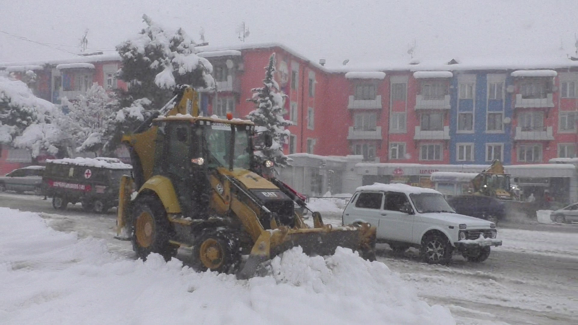 Вышел в город, в такой день лучше пешком, хоть техника усиленно очищает дороги, но снега много и машины буксуют. Маршрутки не работают, но в целом город живет своей жизнью, с появлением газа и хлебопекарни заработали.