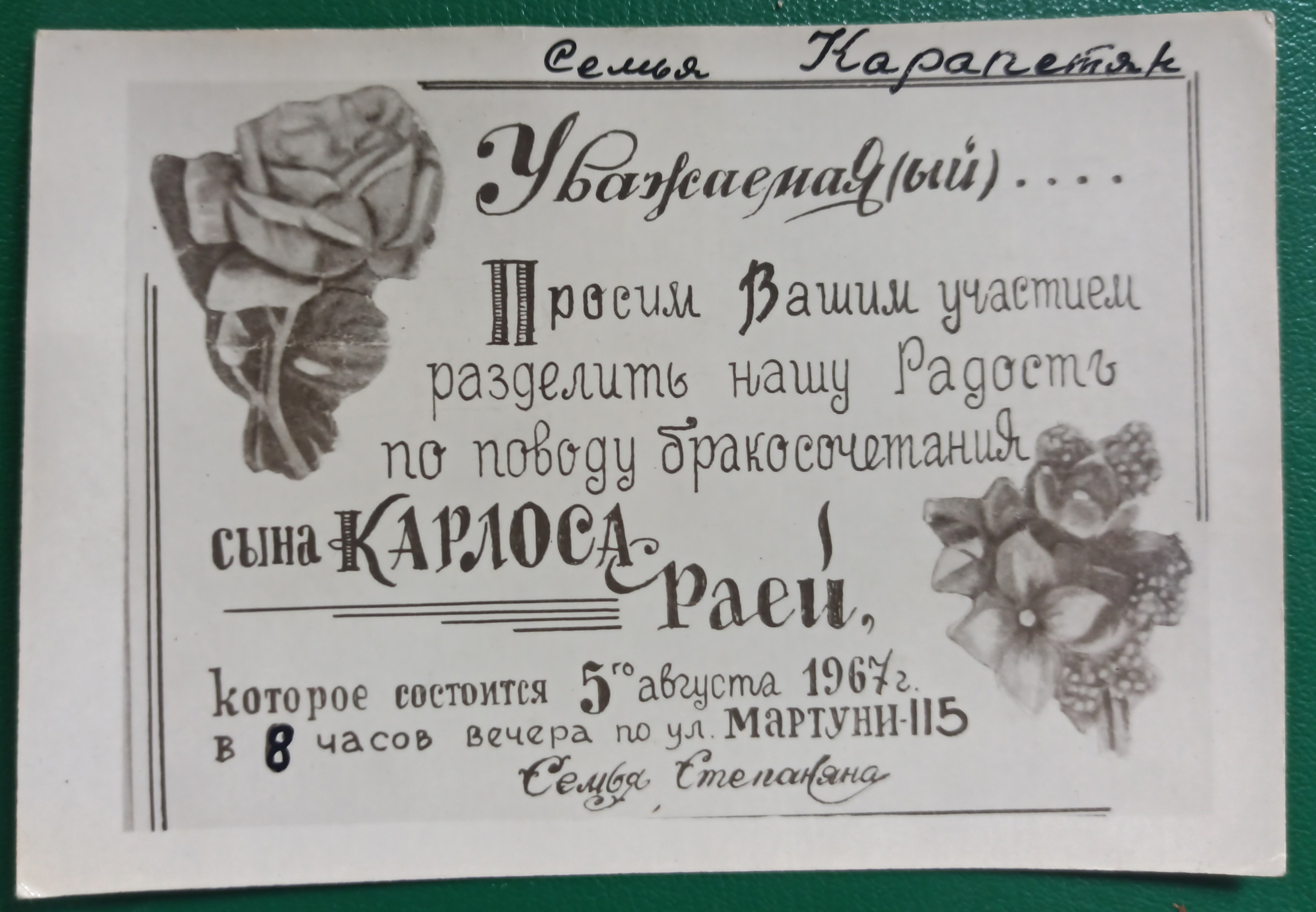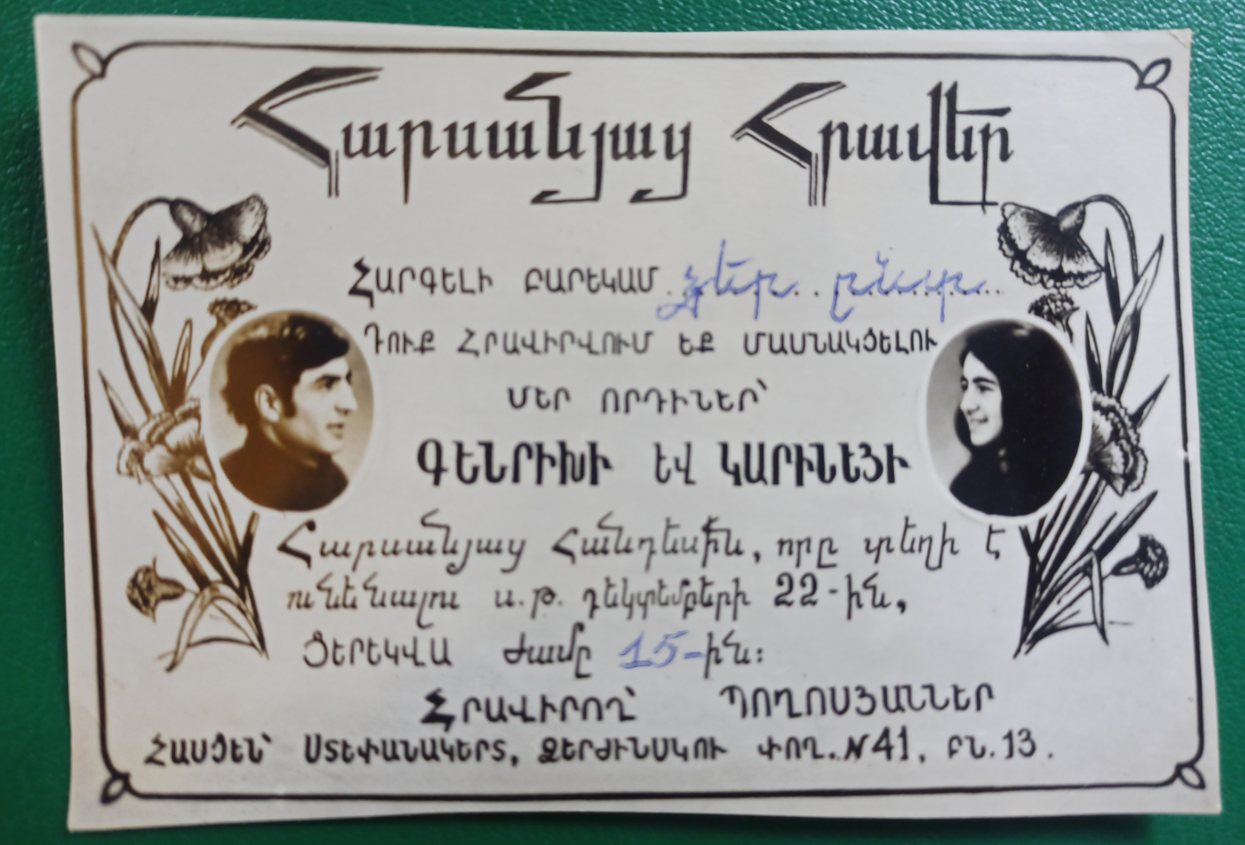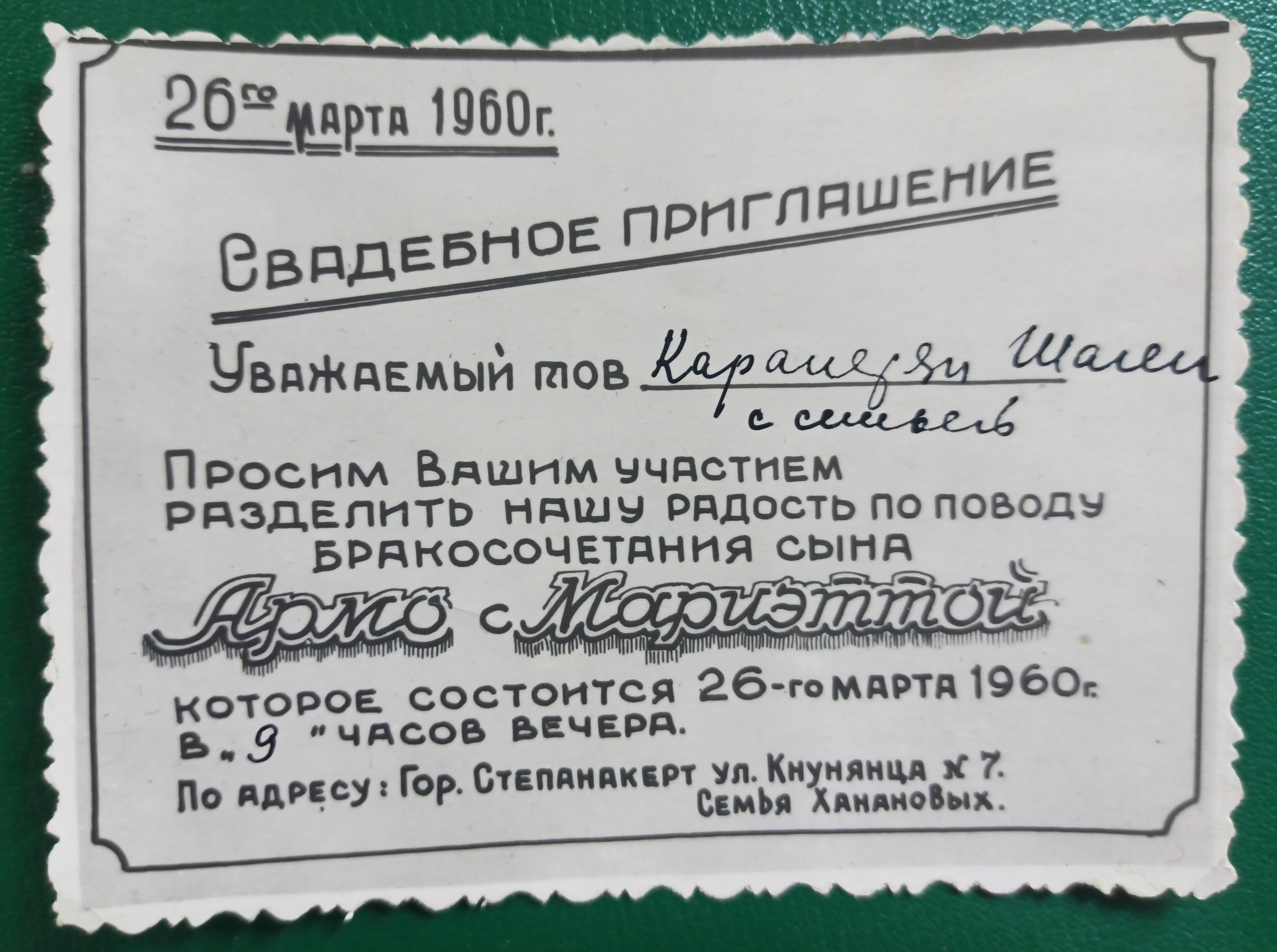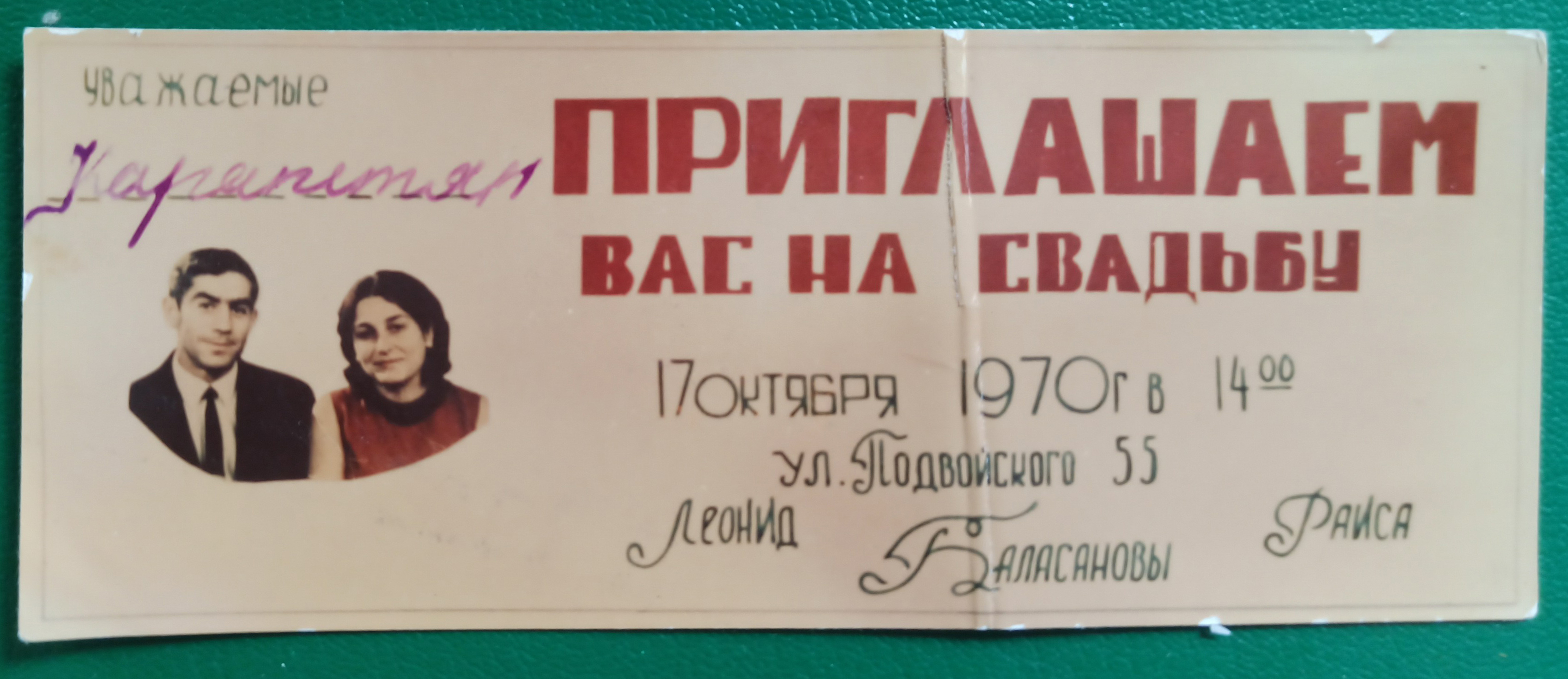 Предлагаю вспомнить советские свадьбы, ведь наше поколение - это дети советских молодоженов. Раньше было модно присылать приглашения на свадьбу. Одно такое дореволюционное приглашение, 1912 года показывал в статье про архив дома Асан Джалалянов,