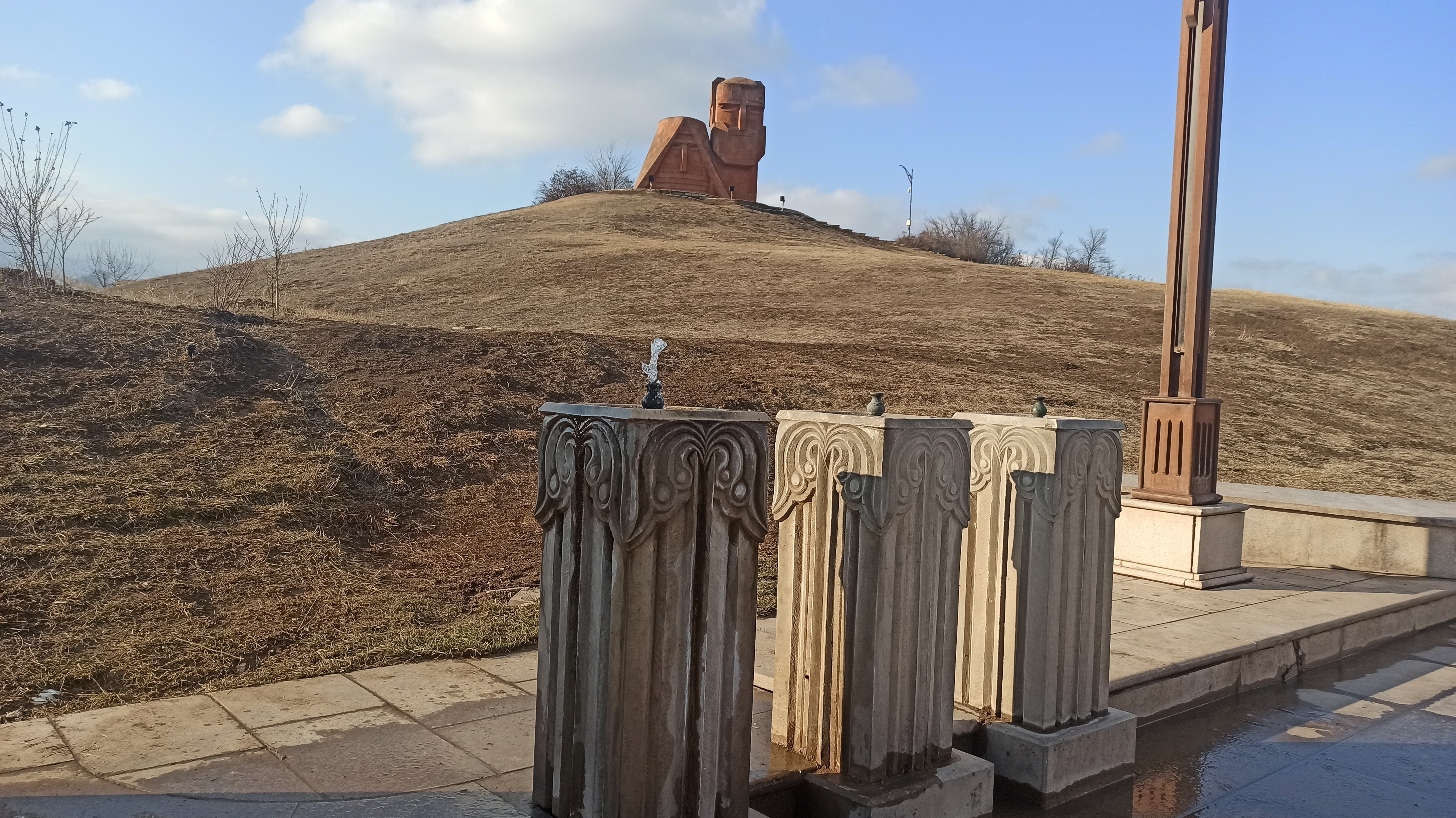 Неподалеку от монумента "Дед да Баба" лежат наши хачкары и памятники, которые вывезли из г. Лачина еще в июле 2022 года. У нашего Сырпазана (верховный титул в церкви Арцаха) нет ни бензина, ни средств, чтобы перенести их на территорию церкви. А может все есть, только совести нет...