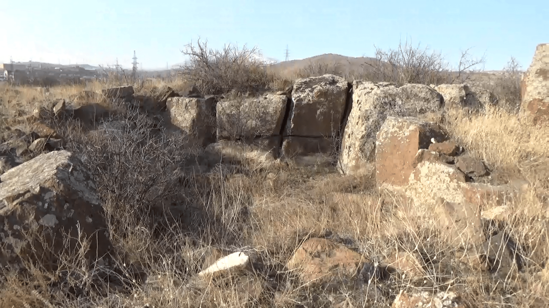 Сохранились основания стен, а в некоторых местах и сами стены, которые возвышаются над холмом на правом берегу реки Раздан.