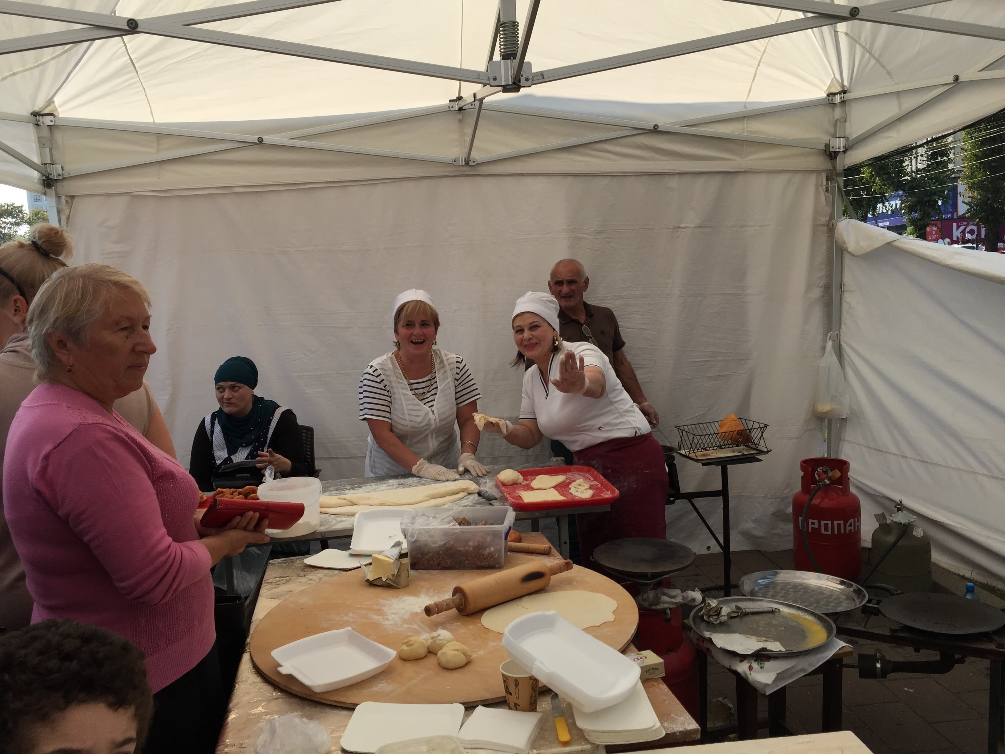 Надо отметить, что нальчане проявили интерес к празднику, и все два дня в массовом порядке являлись на площадь Абхазии семьями, с детьми, благо погода стояла теплая, даже жаркая. В палатках, установленных по всему периметру площади Абхазии, торговали разнообразной едой, как местной – лакумами с сыром, хычинами, шашлыками и пловом, так и заморской – тайским супом, греческими сырниками и бог весть еще чем.