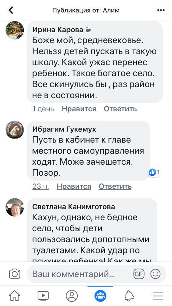 И главный вопрос – куда смотрит директор школы? Мы понимаем, что у школ практически никаких средств нет, но для такого необходимого дела, как школьный туалет, можно и родителей подтянуть, как пишут пользователи Инстаграма и Facebook в группе «Другой Нальчик». Кахун – это не бедное и не богом забытое село, а центр сельскохозяйственного производства Урванского района. Здесь живут вполне состоятельные люди.
