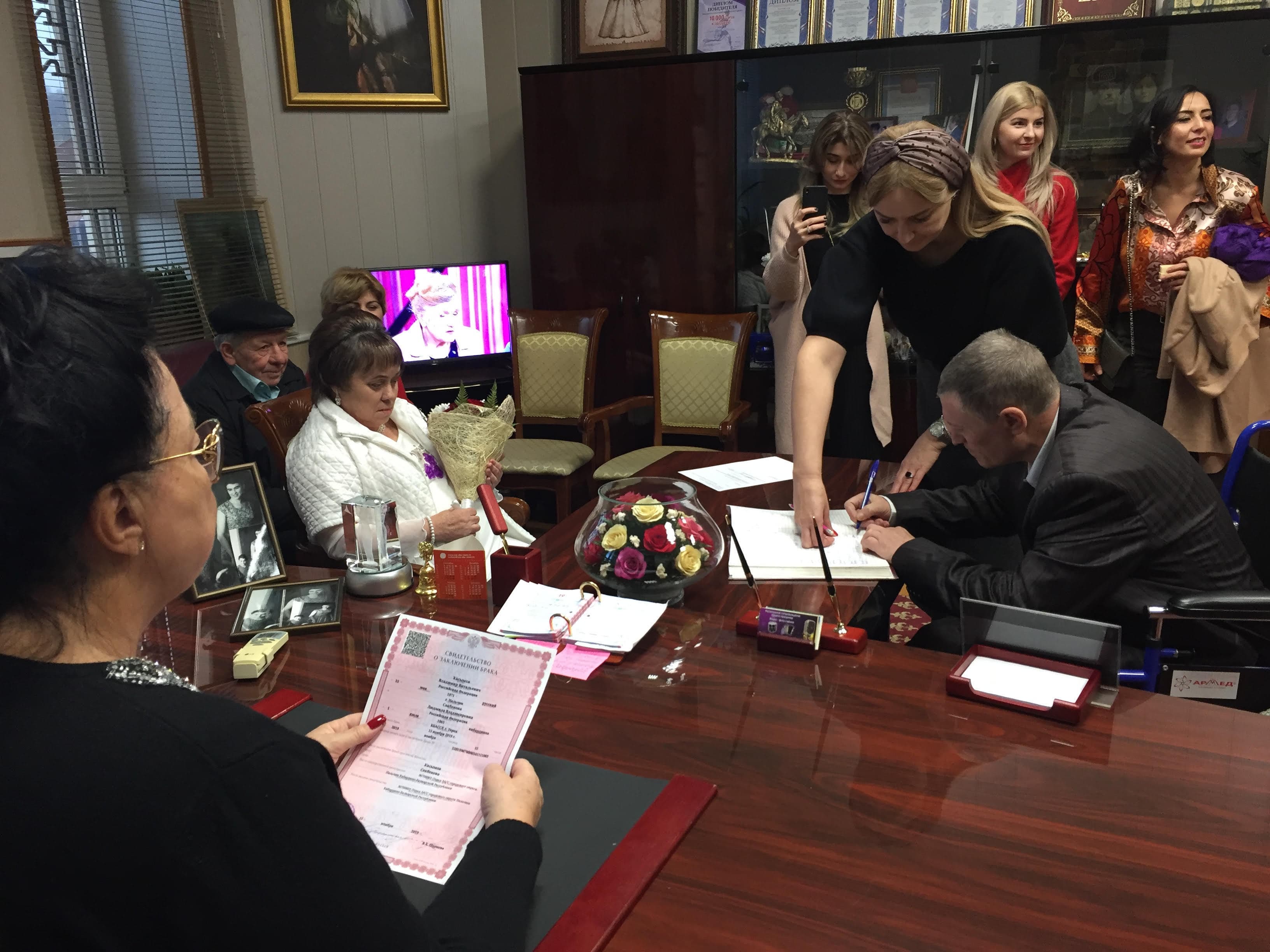 Владимир и Людмила решили скрепить свой семейный союз не только мусульманским браком, но и гражданским, зарегистрировав свой союз в загсе. Церемония бракосочетания в загсе прошла у них сегодня. В эти дни они принимают поздравления. Мы тоже поздравили обе семейные пары. Мы - это я, и группа волонтеров во главе с нальчанкой Залиной Алтуевой, которые решили скинуться и навестить жителей "стардома", как в народе называют эту обитель.