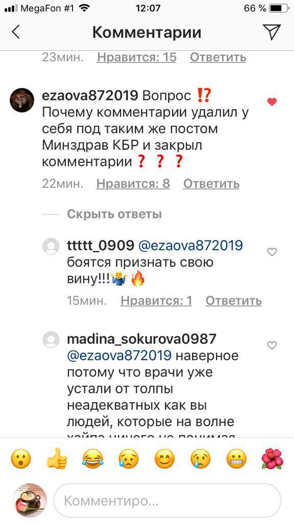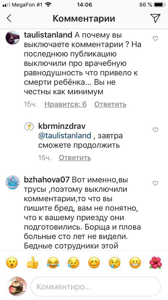 P.S. К утру обнаружила, что на странице Минздрава к обозначенной публикации (а всего к двум последним публикациям) удалены комментарии и закрыт доступ для отзывов. Пользователи под предыдущим сообщением на странице Минздрава и в других группах Инстаграмма выражают недовольство и просят восстановить комментарии. Минздрав отвечает - завтра сможете продолжить.