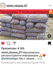 Руслан Бжеников и Аслан Маремшаов, два друга из Зольского района планируют раздать семь тонн картофеля жителям Нальчика, Нарткалы и Баксана. Картофель, в количестве 200 мешков мешков, они будут передавать нуждающимся гражданам, а также многодетным семьям.