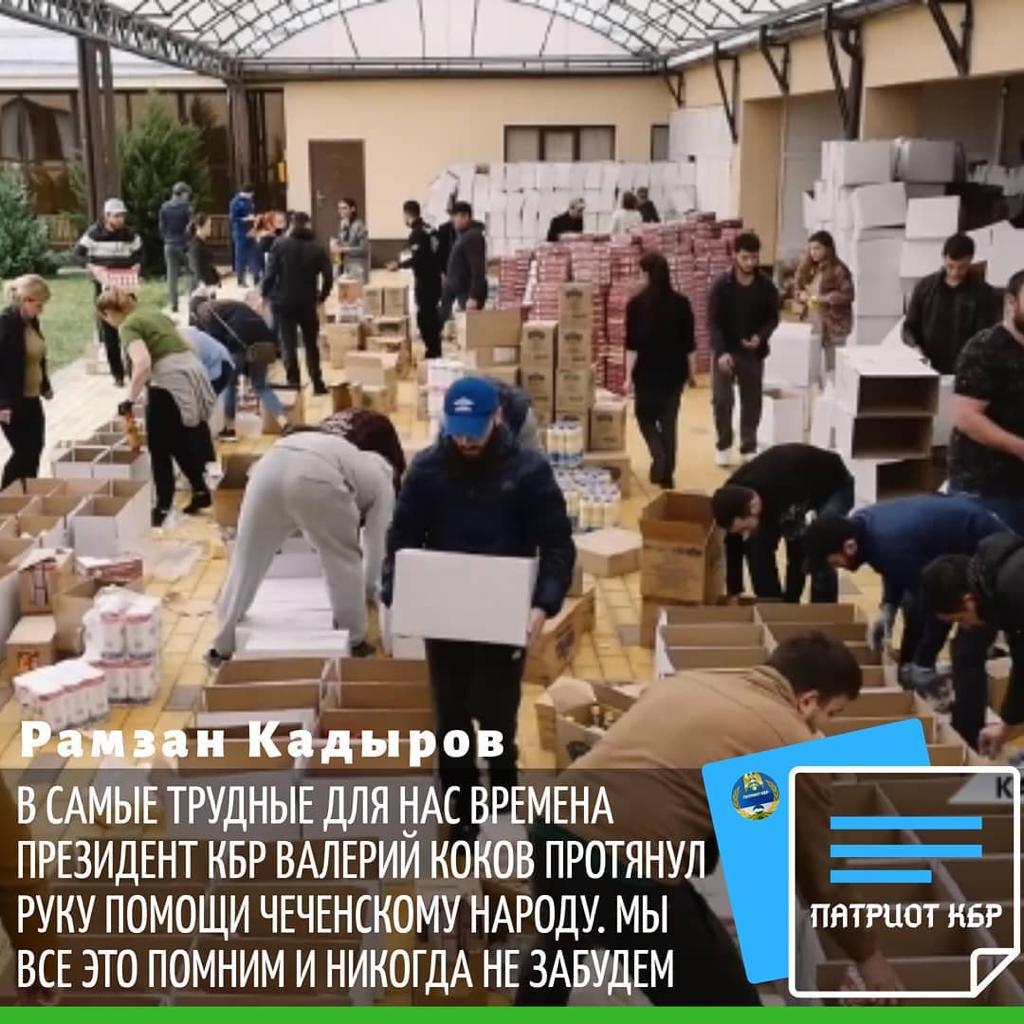 Рамзан Кадыров в соцсетях написал, что между Чечней и КБР установились братские отношения давно, еще когда республиками руководили отцы нынешних глав - Валерий Коков и Ахмат-Хаджи Кадыров, и поэтому он рад возможности оказать благотворительную помощь.