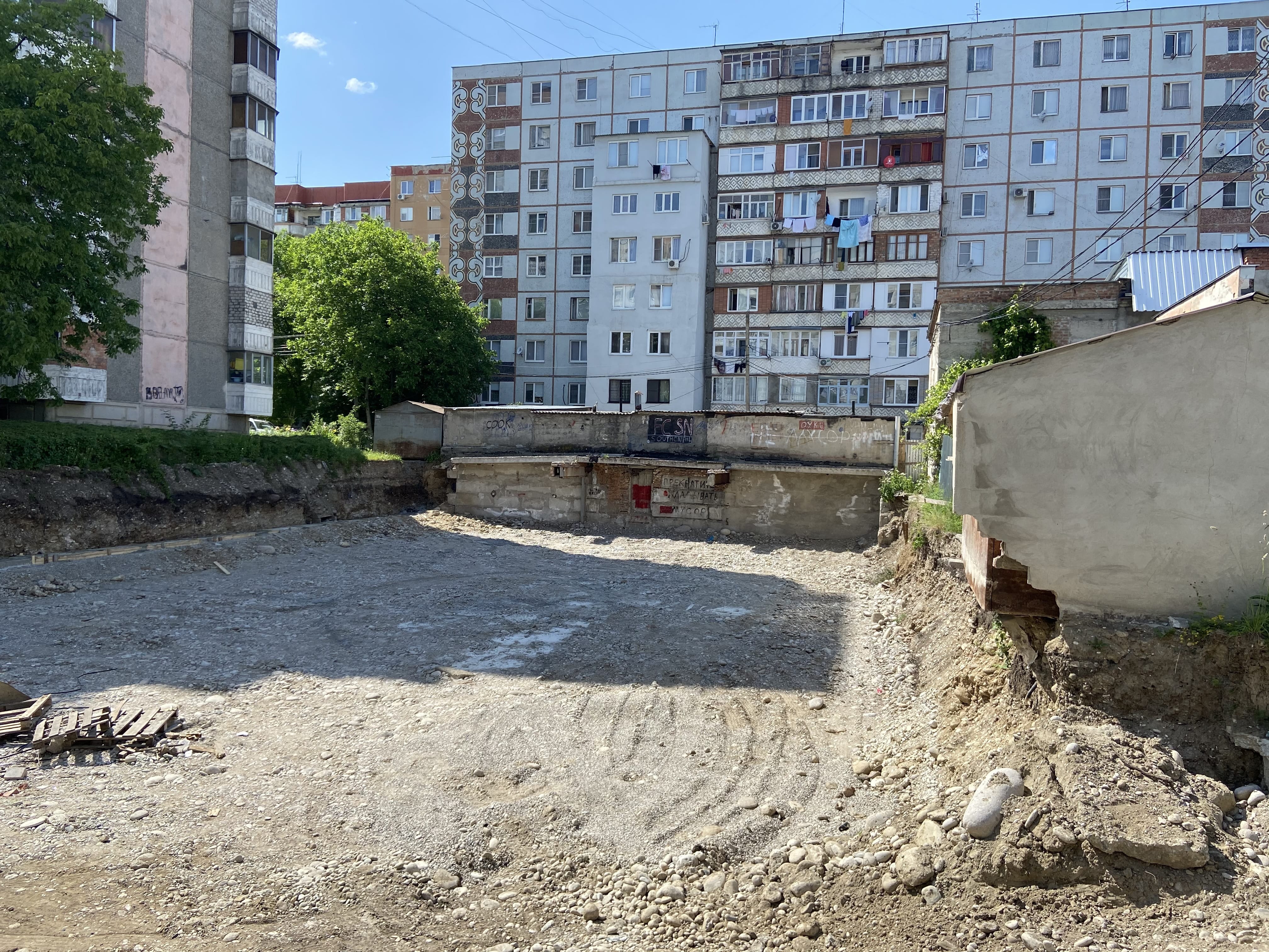 Прошлым летом некий застройщик Х. - не буду называть его фамилию полностью, нальчанам он хорошо известен скандальными стройками, - приобрел несколько гаражей в собственность. Оставшимся владельцам гаражей он обещал выделить квартиры в новой многоэтажке, и начал рыть котлован под будущий 11-этажный дом.
