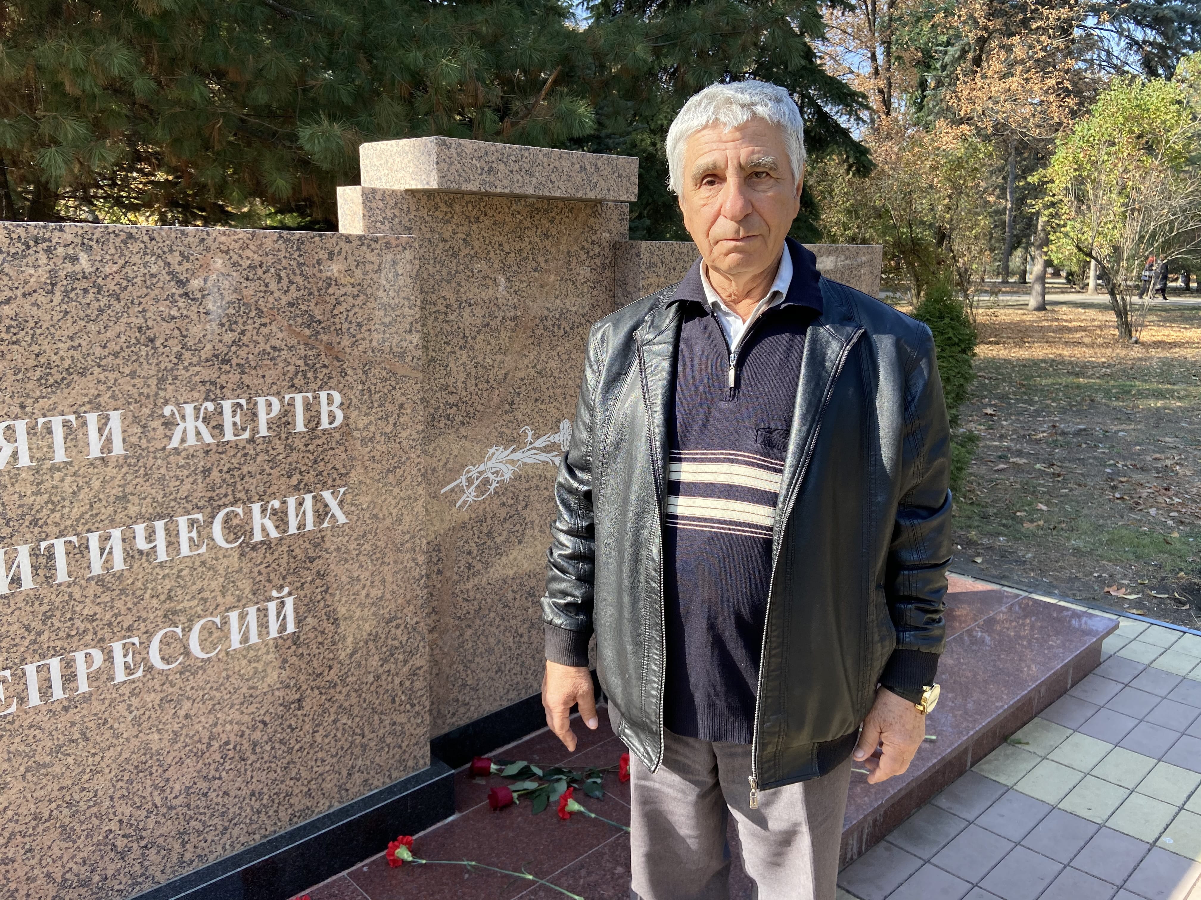 У памятника я встретила 70-летнего Аслана Бейтуганова, который приезжает сюда из селения Лечинкай каждый год, чтобы почтить память своего деда. Он рассказал, что его дед, Бейтуганов Хамид Дзуевич, был репрессирован дважды, и оба раза по 58-ой статье (государственные преступления).