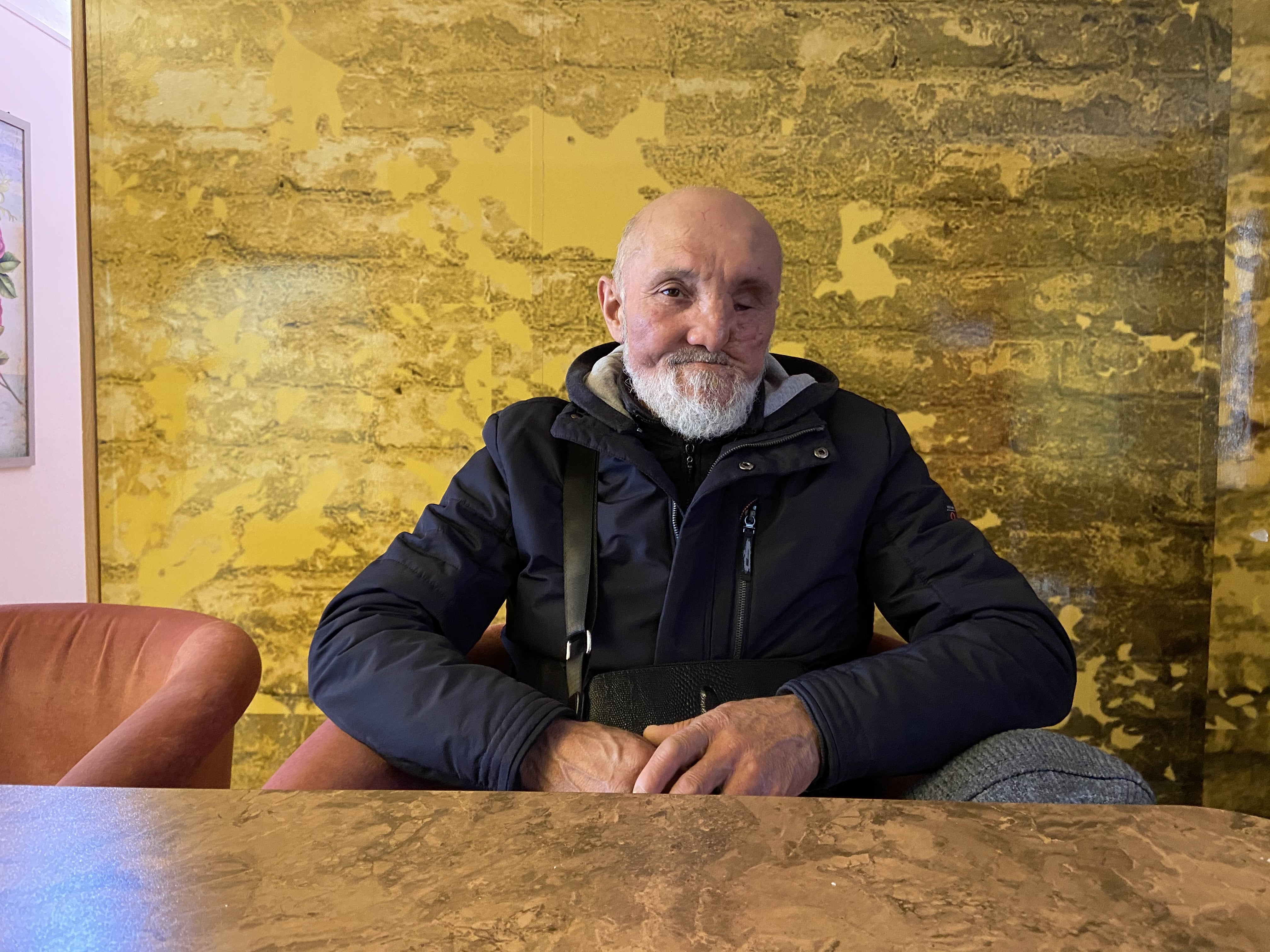 С одним таким бездомным я познакомилась на днях. Его зовут Хасан Ойтов. Ему 63 года. Родился и вырос он в селении Исламей в многодетной семье. После окончания школы его призвали в армию. Служил в составе Группы Советских Войск в Германии, в Потсдаме. Во время службы, в 19 лет, он и несколько других военнослужащих получили травмы. В результате - Хасан потерял левый глаз и зубы, а также получил повреждения верхней челюсти, части скулы и носа с левой стороны. Он перенес несколько операций по пересадке хряща и кожи, ему поставили протезы, оформили инвалидность третьей группы и отправили домой в 1978 году.
