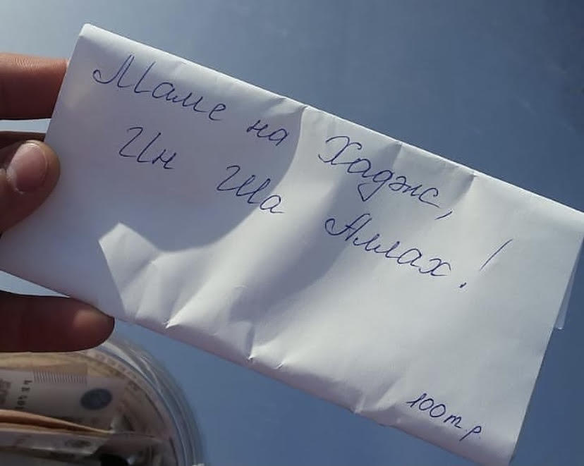 Молодая женщина помогала своей матери собирать деньги на хадж. Но мама не дожила. Конверт с деньгами в сумме 100 тыс рублей женщина внесла в фонд.