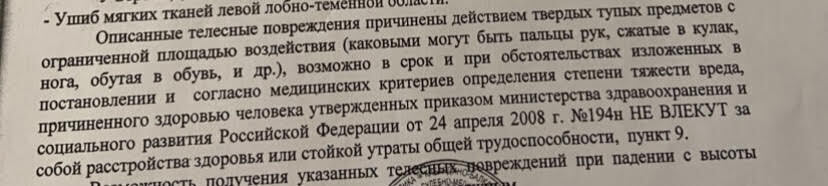 Когда Дина обратилась за помощью в больницу, врачи вызвали полицию. И ей пришлось рассказать, как все было. Ее и ребенка направили на судмедэкспертизу. Судебно-медицинская экспертиза установила наличие у нее и ребенка телесных повреждений.