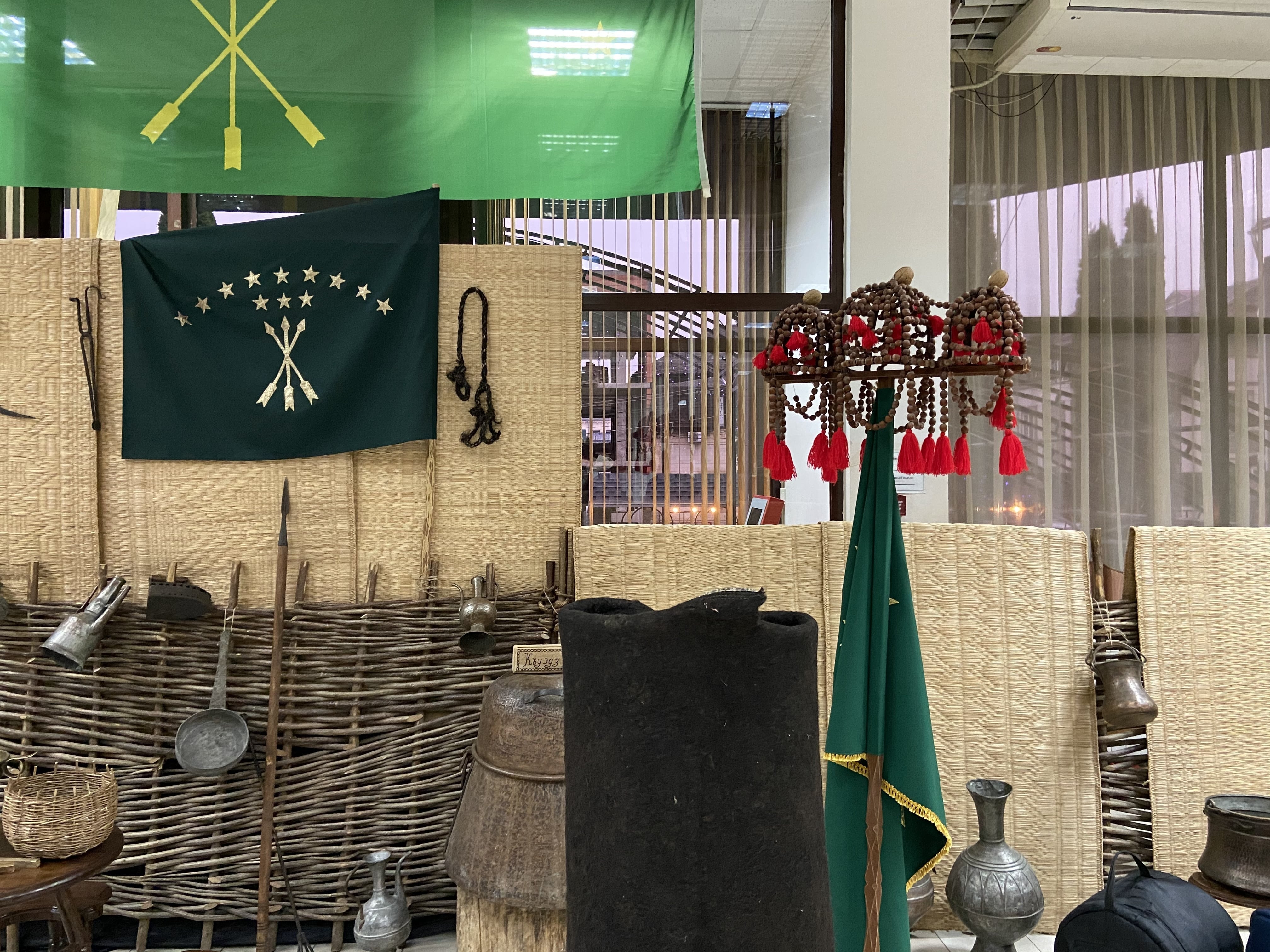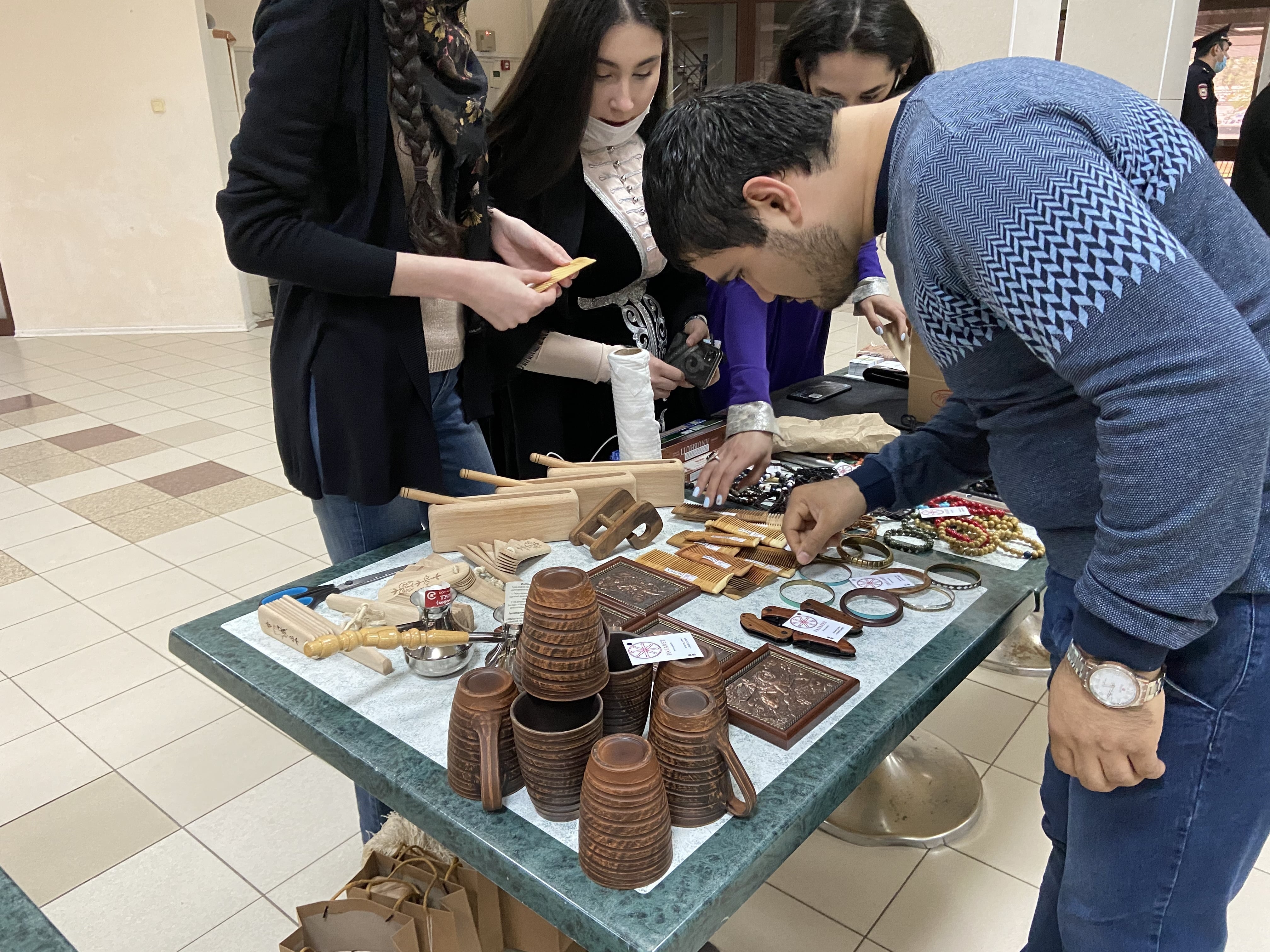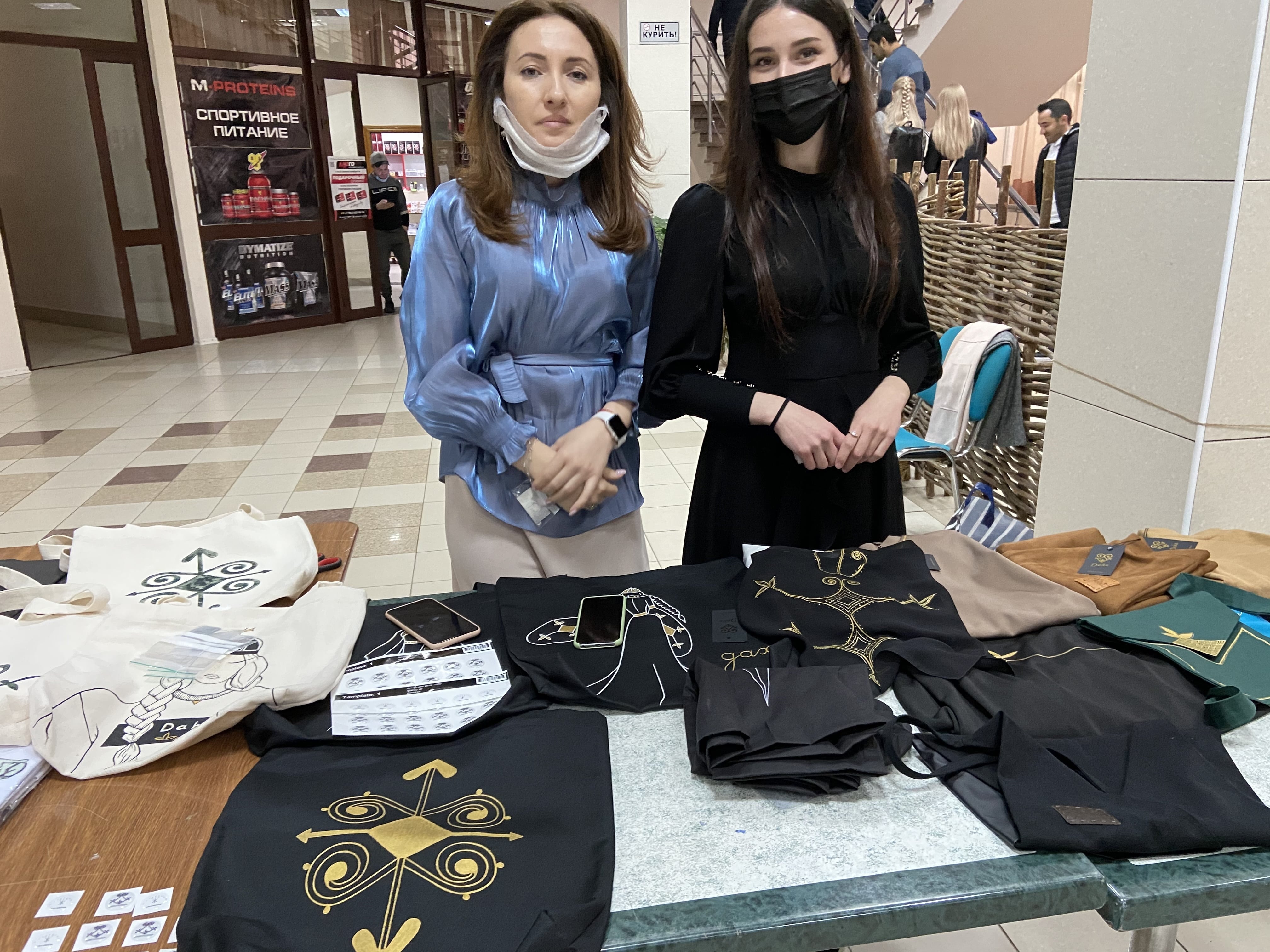 В фойе ГКЗ члены молодежной общественной организации «Нарт Хэку» организовали выставку предметов и изделий народного промысла. Здесь были представлены женские пояса, сувениры с адыгским орнаментом. Сумки, рубашки, платки, разрисованные вручную натуральными красками с адыгской символикой.