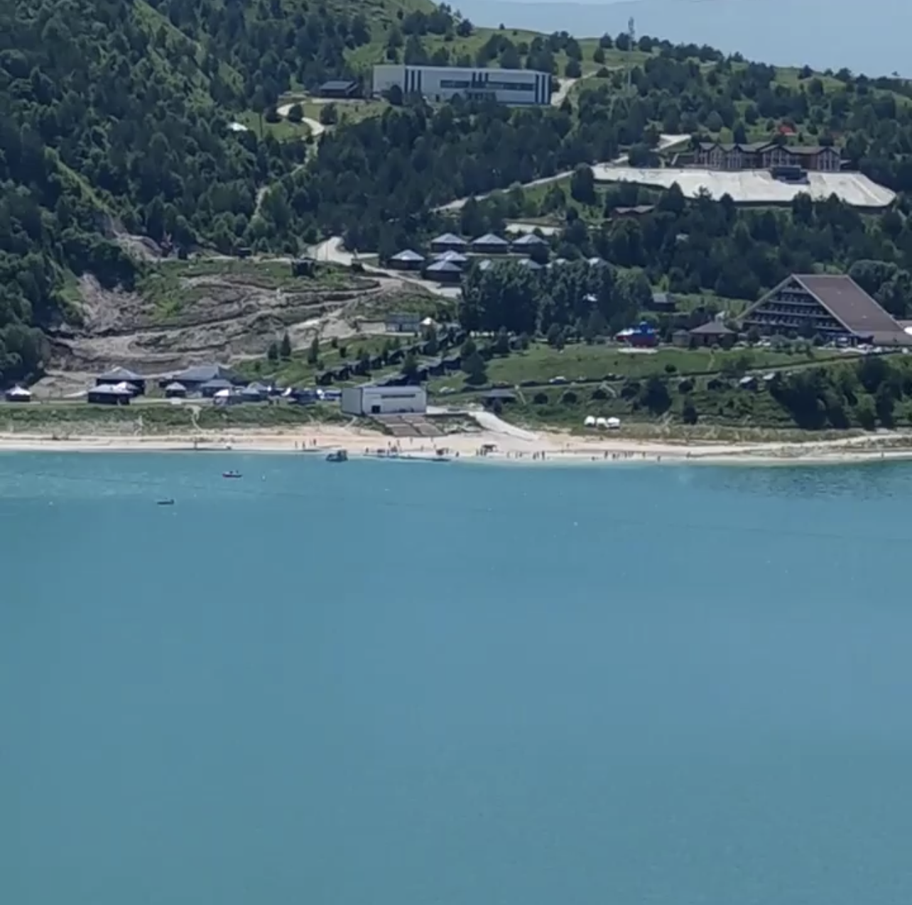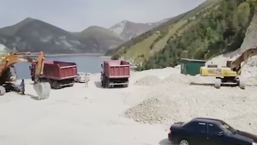 Строители незаконно разрушили естественный ландшафт на территории прилегающей к природному памятнику Кезеной-Ам на берегу озера. Фото - скриншот с видео из соцсетей