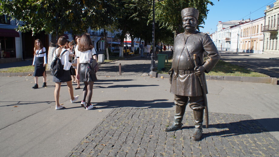 Скульптура городового находится в самом центре главной пешеходной улицы города. Здесь тебе и Ленин, и отель с имперским налётом «Александровский» и городовой – вся та самая имперская власть в микромасштабе.