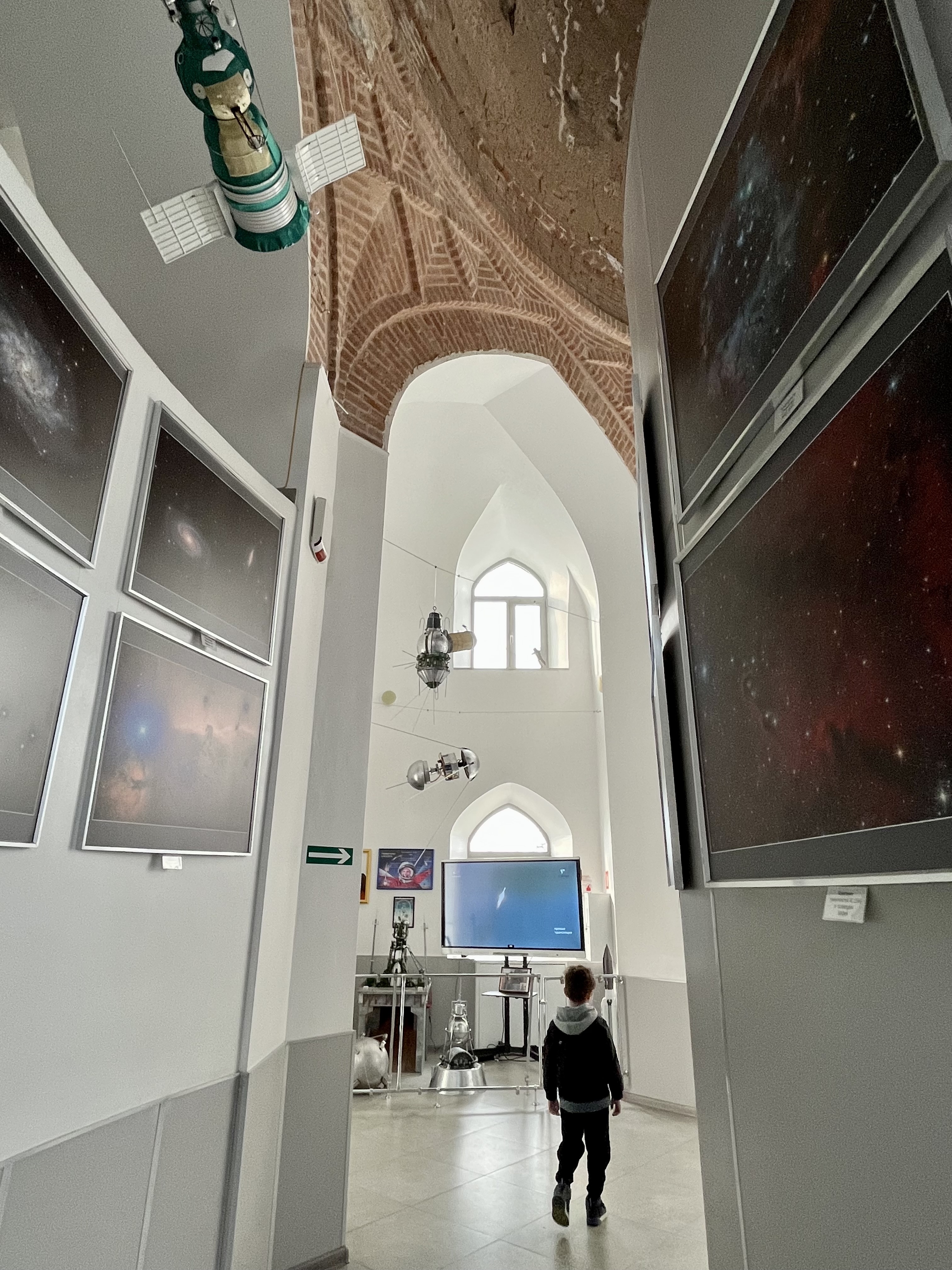 В планетарии есть классные макеты, копия лунохода в масштабе 1:1 и тому подобное. Экскурсоводы очень милые, понравилось как они пытались увлечь детей и мотивировать их историями космонавтов и учёных, в том числе историей Комаева, простого осетинского парня, ставшего конструктором космических аппаратов.