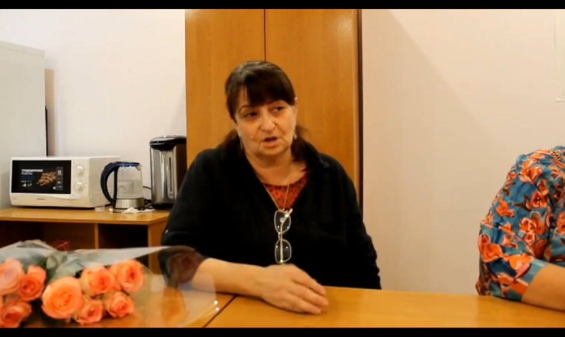 На столе рядом с женщинами лежат два букета роз: "Мы не ожидали, что нас сегодня пригласят в "Высший совет осетин" и скажут много тёплых слов в наш адрес, спасибо им большое", - сказала женщина.